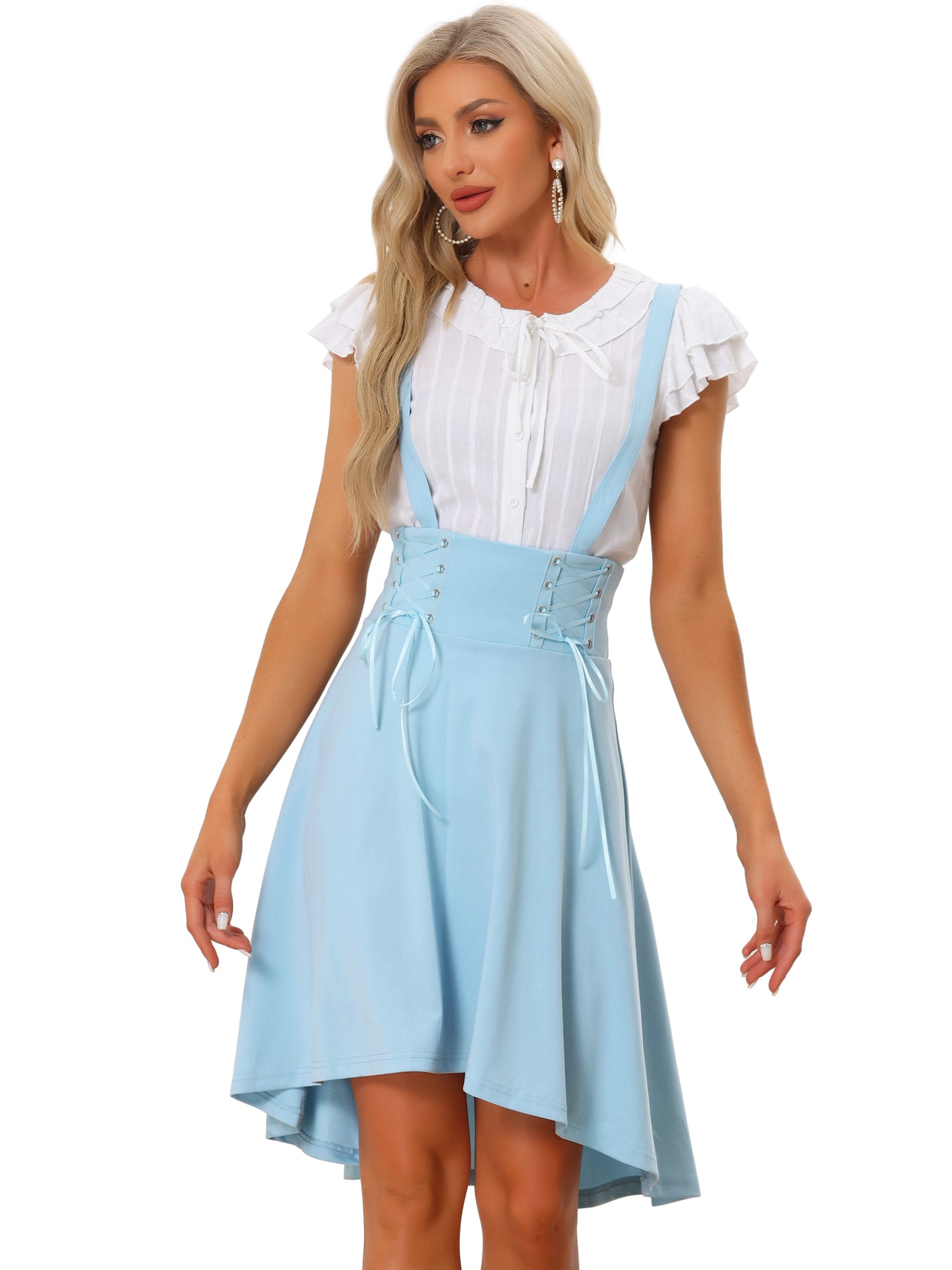 Women's Goth Girl Summer Brace Skirts Lace Up Midi High Low Suspender Skirt