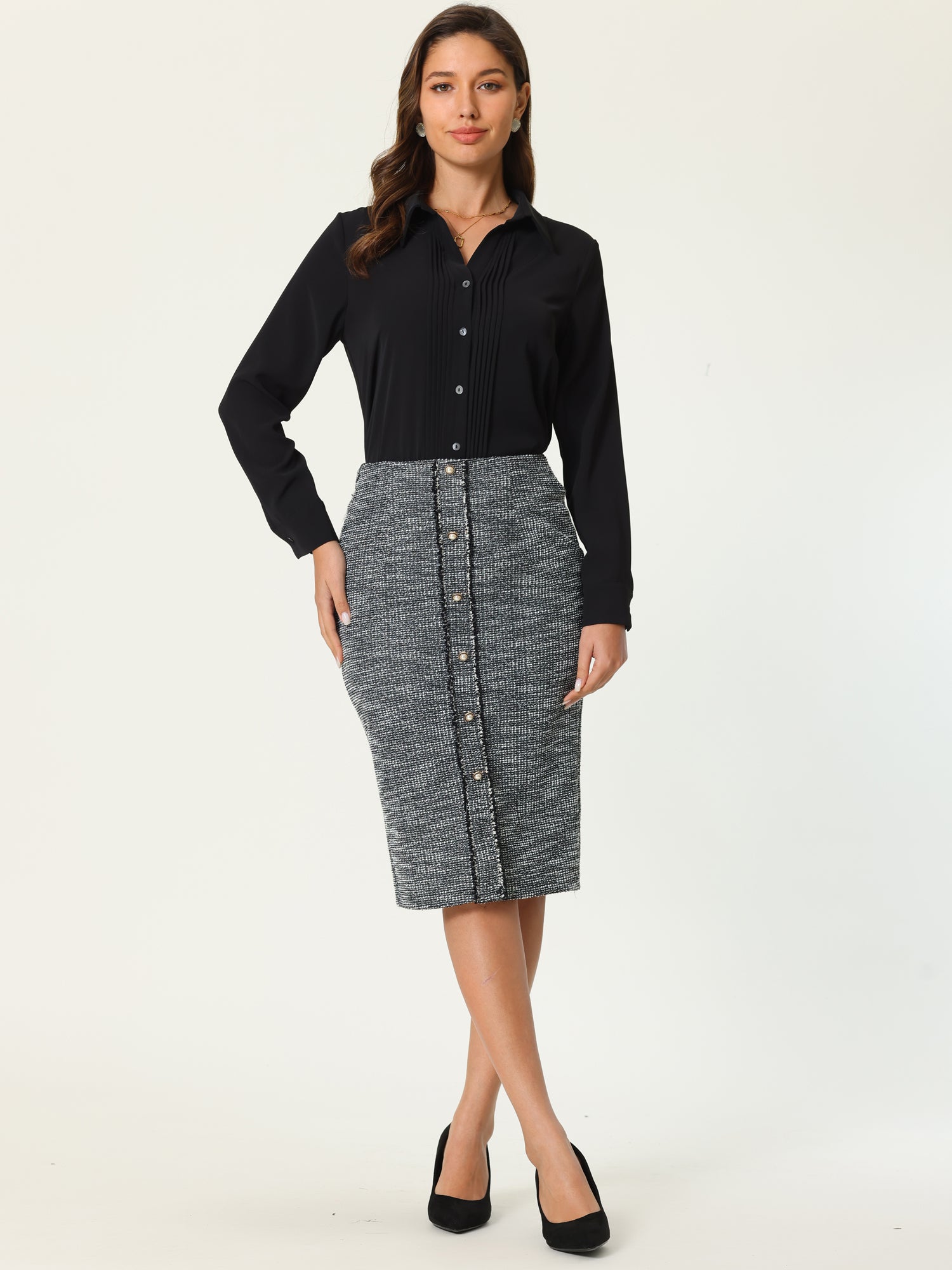 Women's Knee Length Skirt Elegant Tweed Pencil Skirt