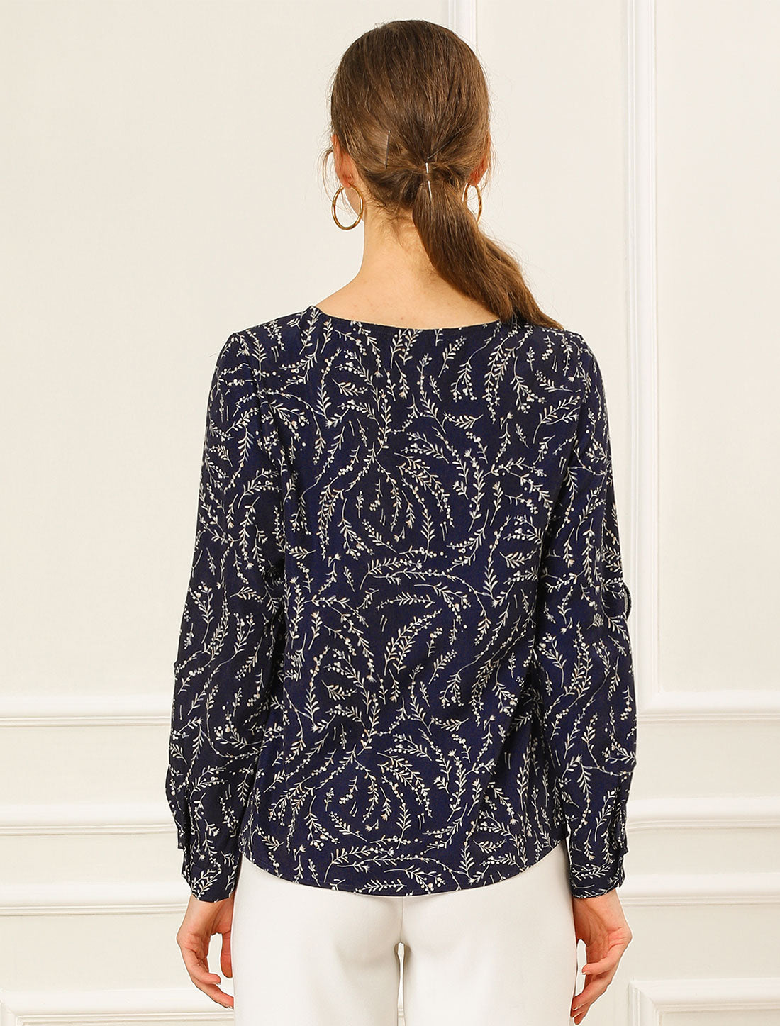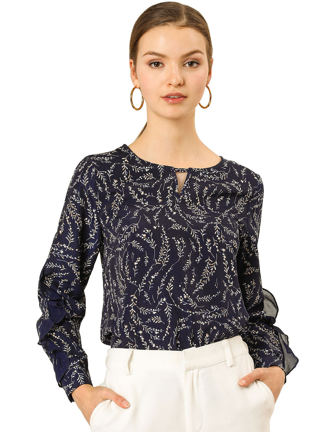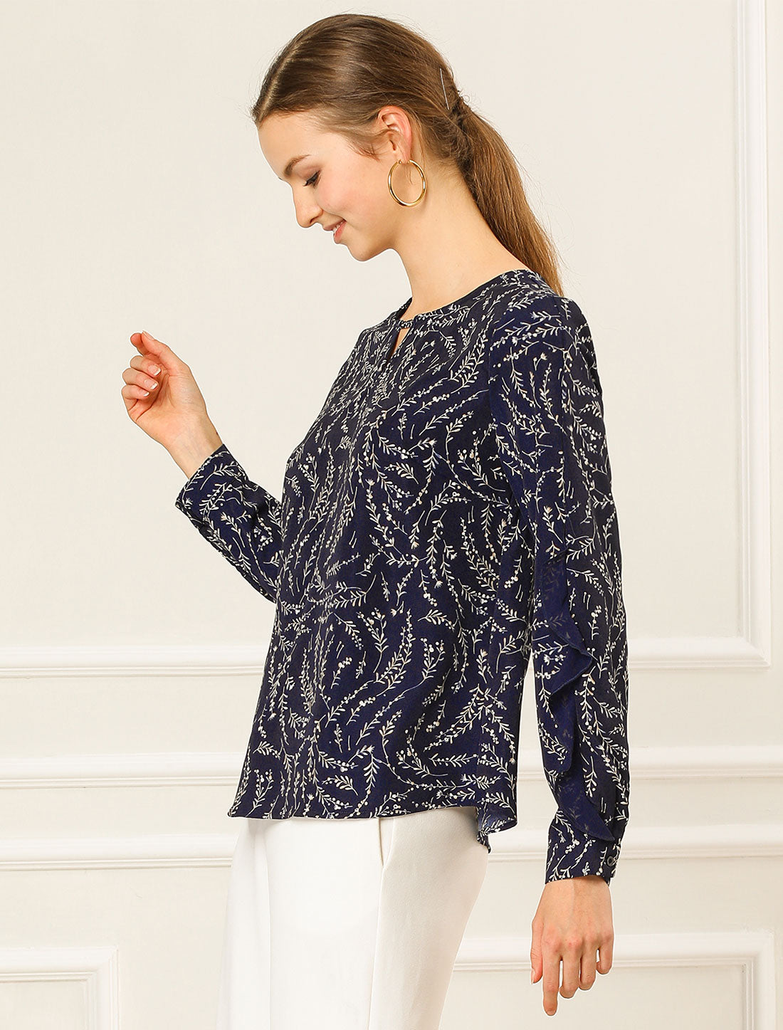 Women's Lace Long Sleeve Top Keyhole Neck Floral Ruffled Blouse