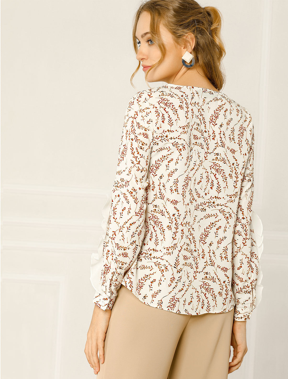Women's Lace Long Sleeve Top Keyhole Neck Floral Ruffled Blouse
