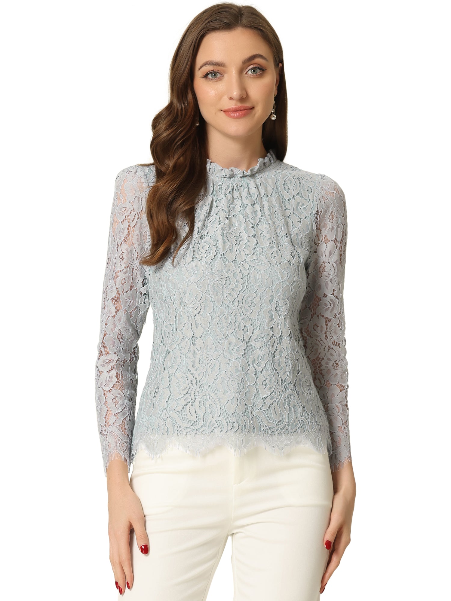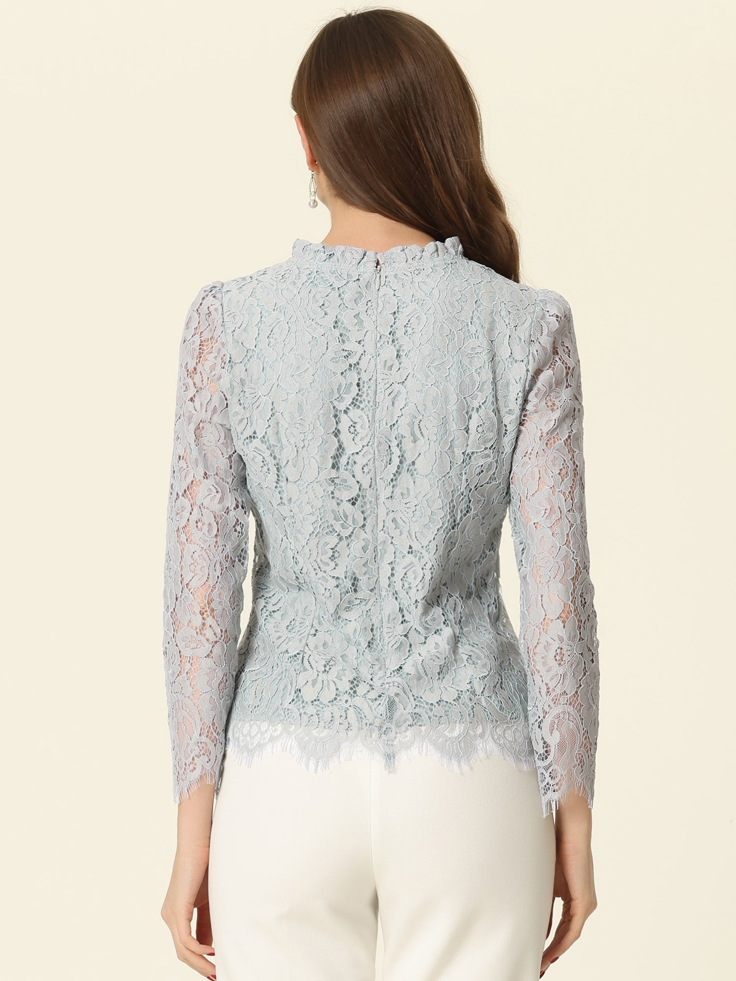 Women's Long Sleeve Lace Top Dressy Elegant Peplum Blouse Shirt