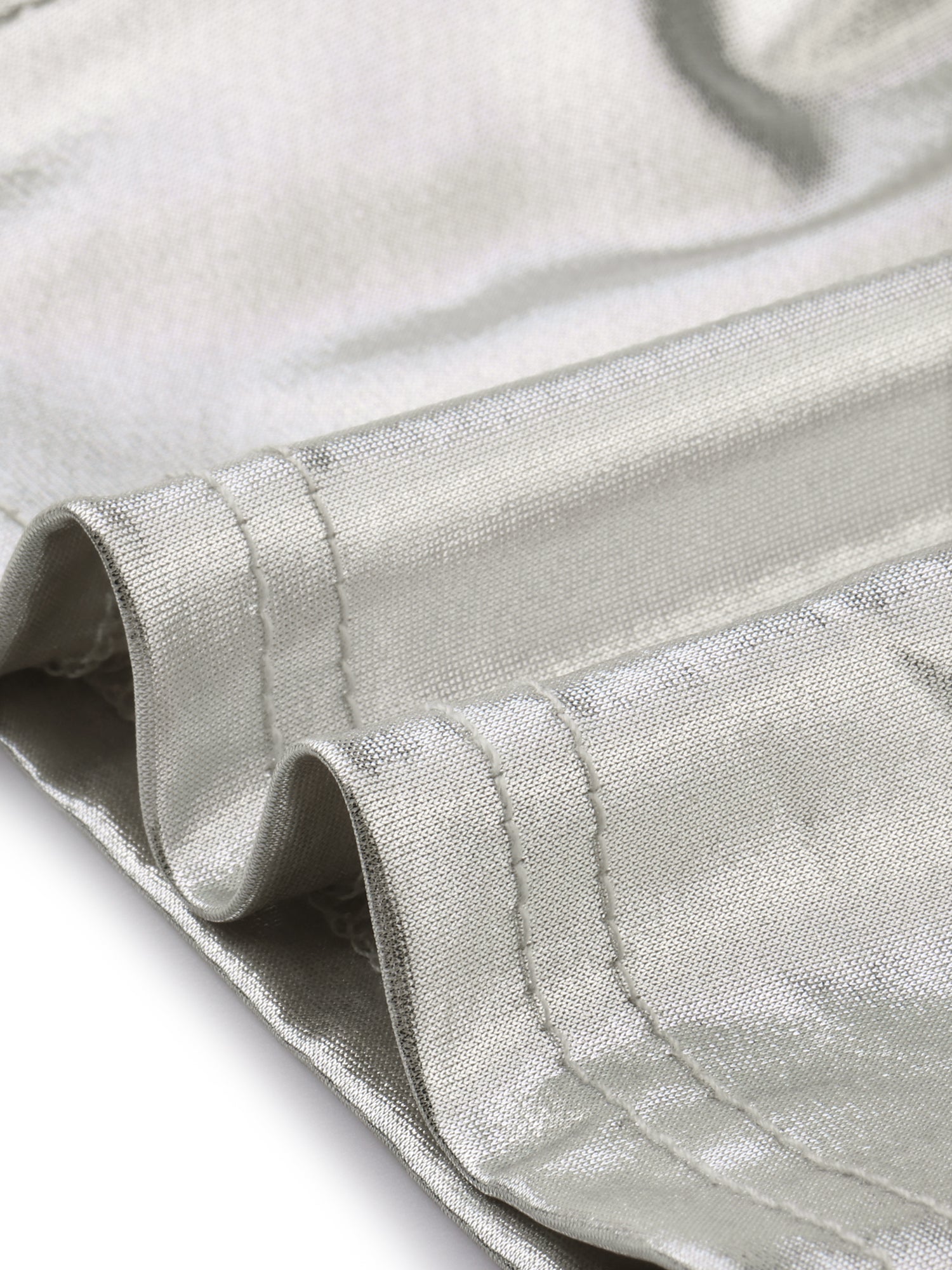 Women's Metallic Backless Cami Asymmetrical Spaghetti Straps Halter Sparkle Top