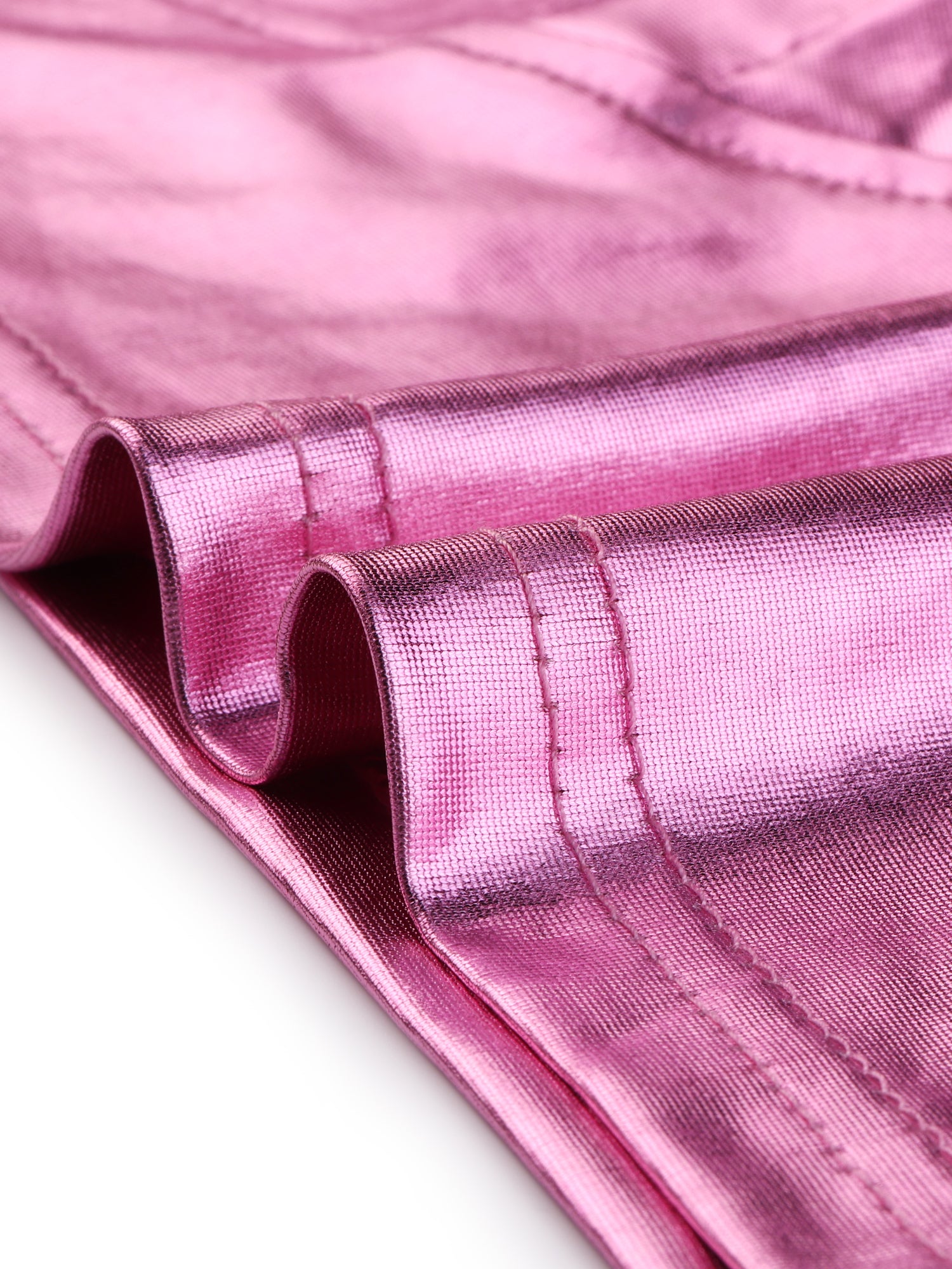 Women's Metallic Crop Top Clubwear Party Halter Rave Chrome Shirt Halter Neck Holographic Top