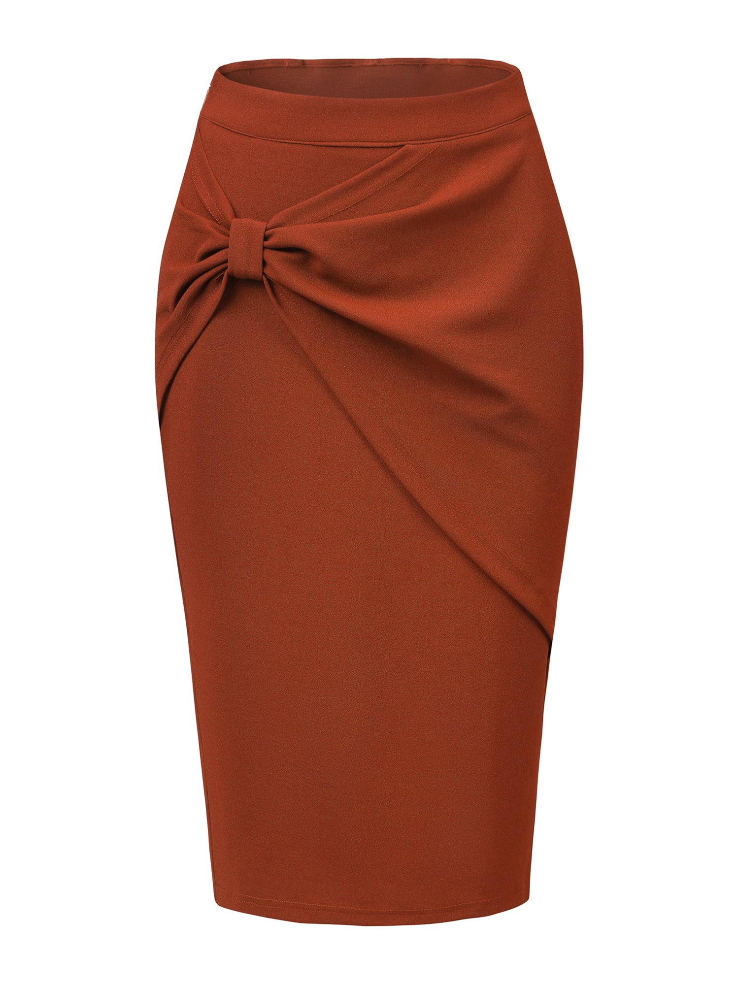 Women's Office Ruched High Waist Knee Length Wear to Work Pencil Bodycon Skirt