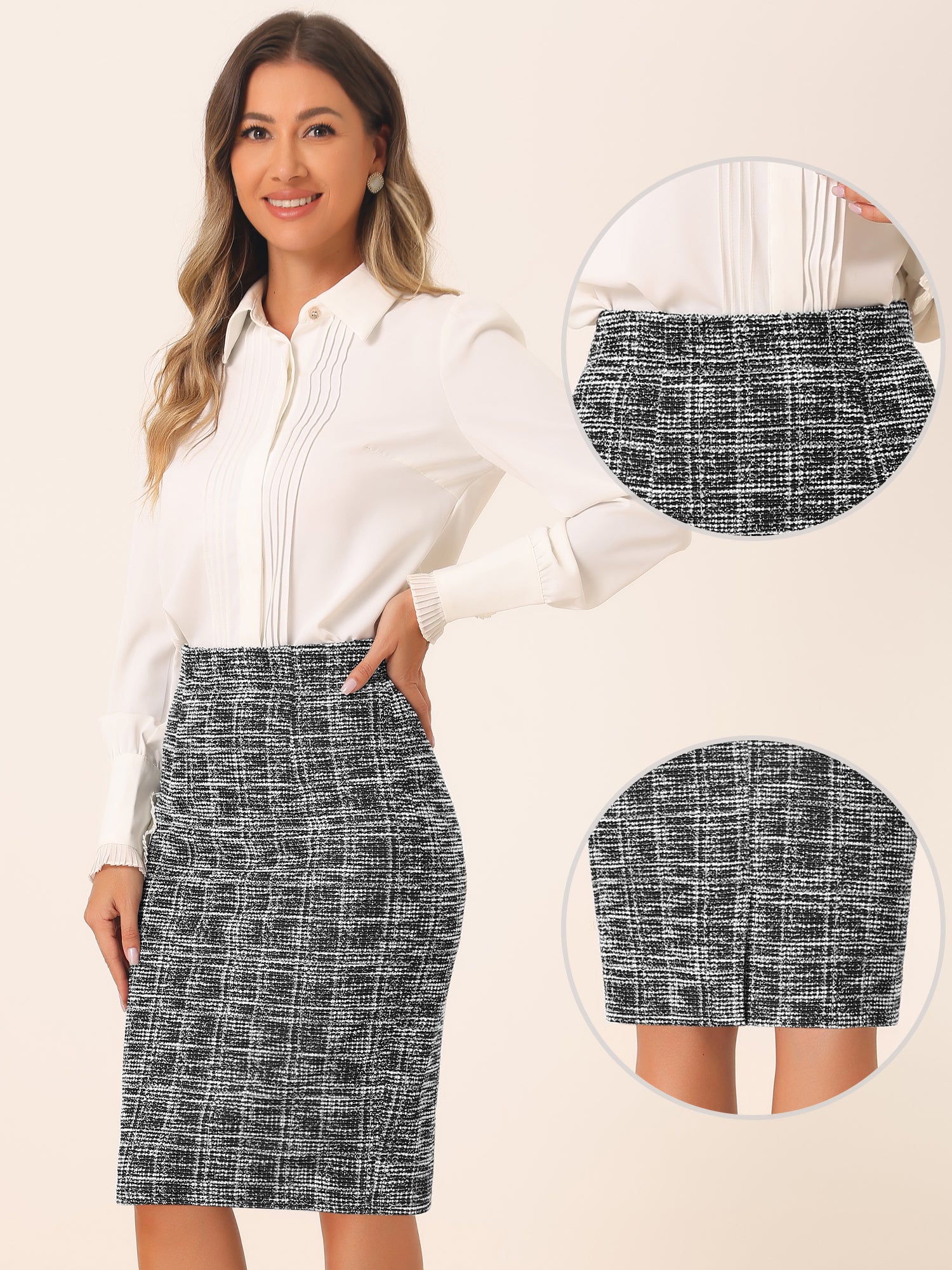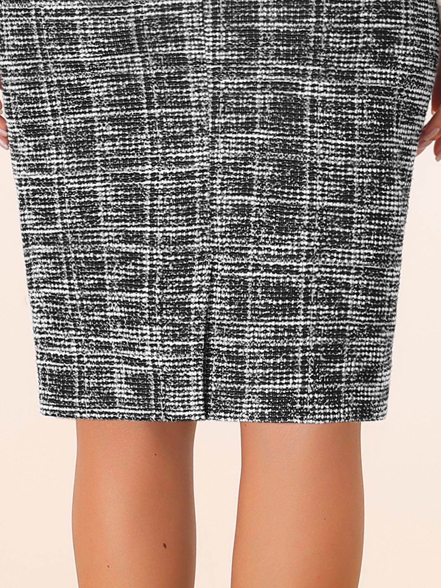 Women's Office Work Tweed High Waist Split Bodycon Plaid Pencil Skirts