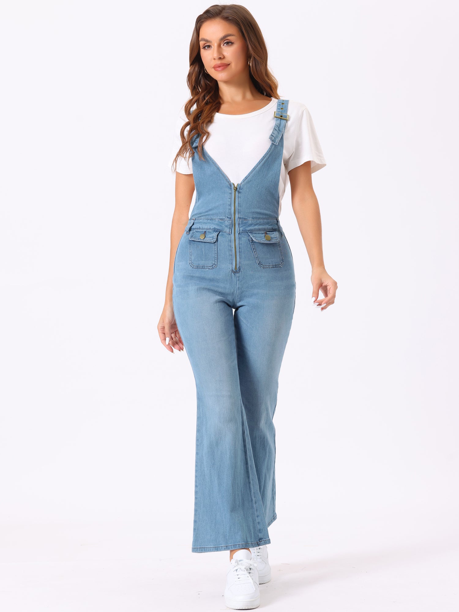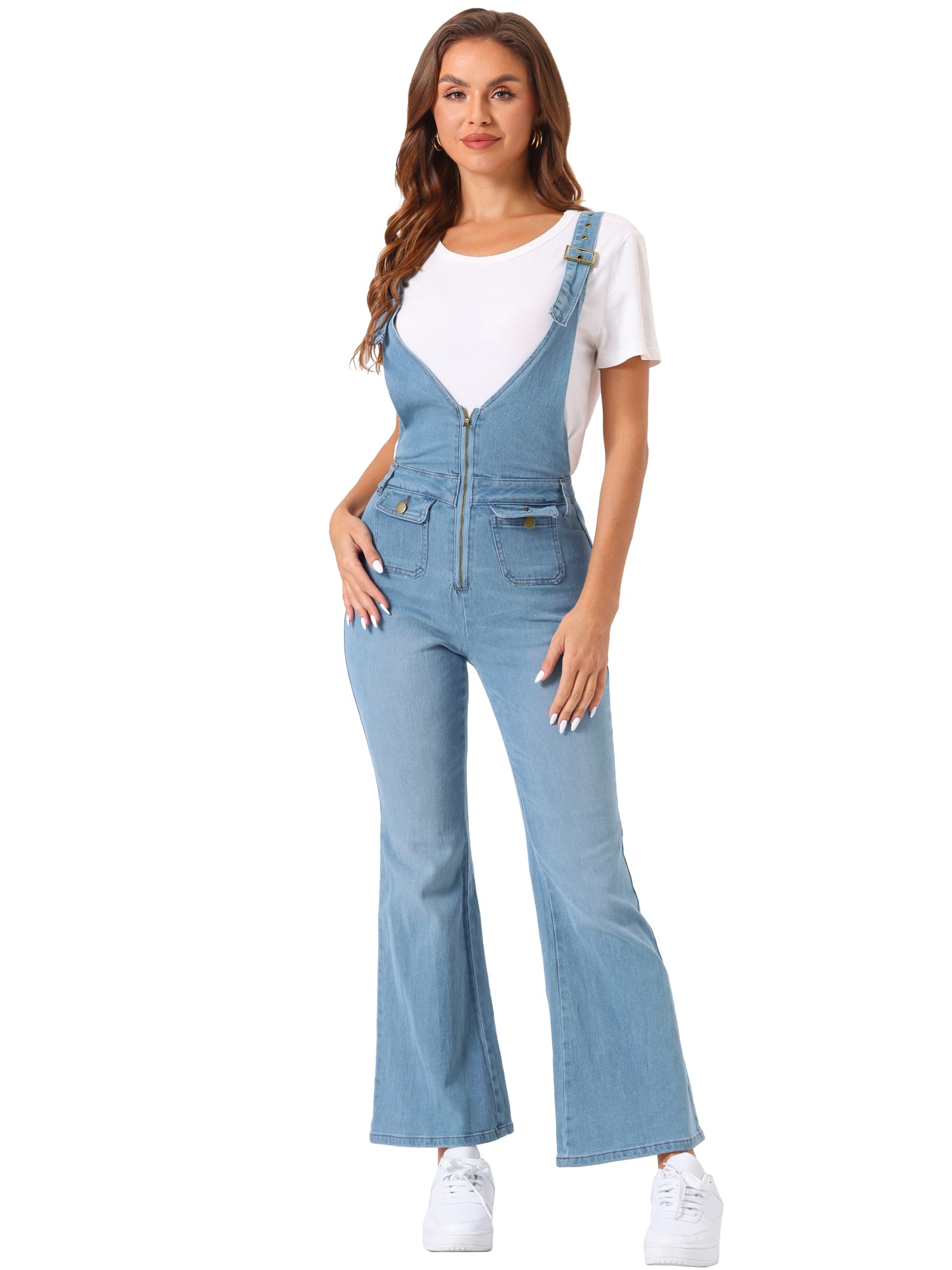 Women's Overalls Jeans Casual Adjustable Bib Bell Bottom Denim Pants Jumpsuits
