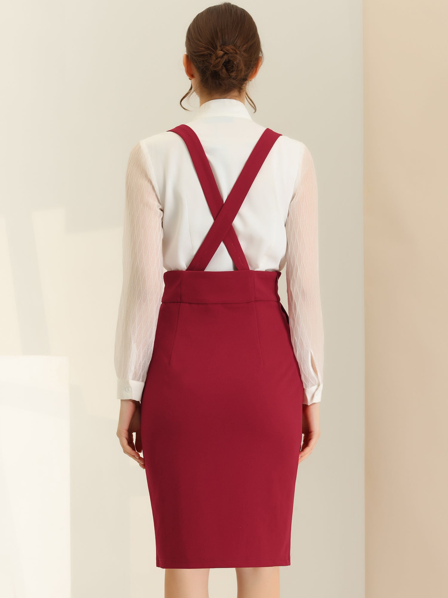Women's Pencil Skirts High Waist Split Adjustable Strap Suspender Skirt