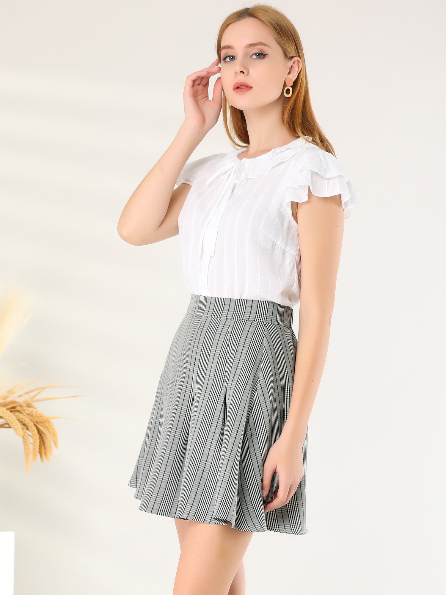 Women's Plaid Pleated Skirt Check A Line High Waist Work Mini Skirt