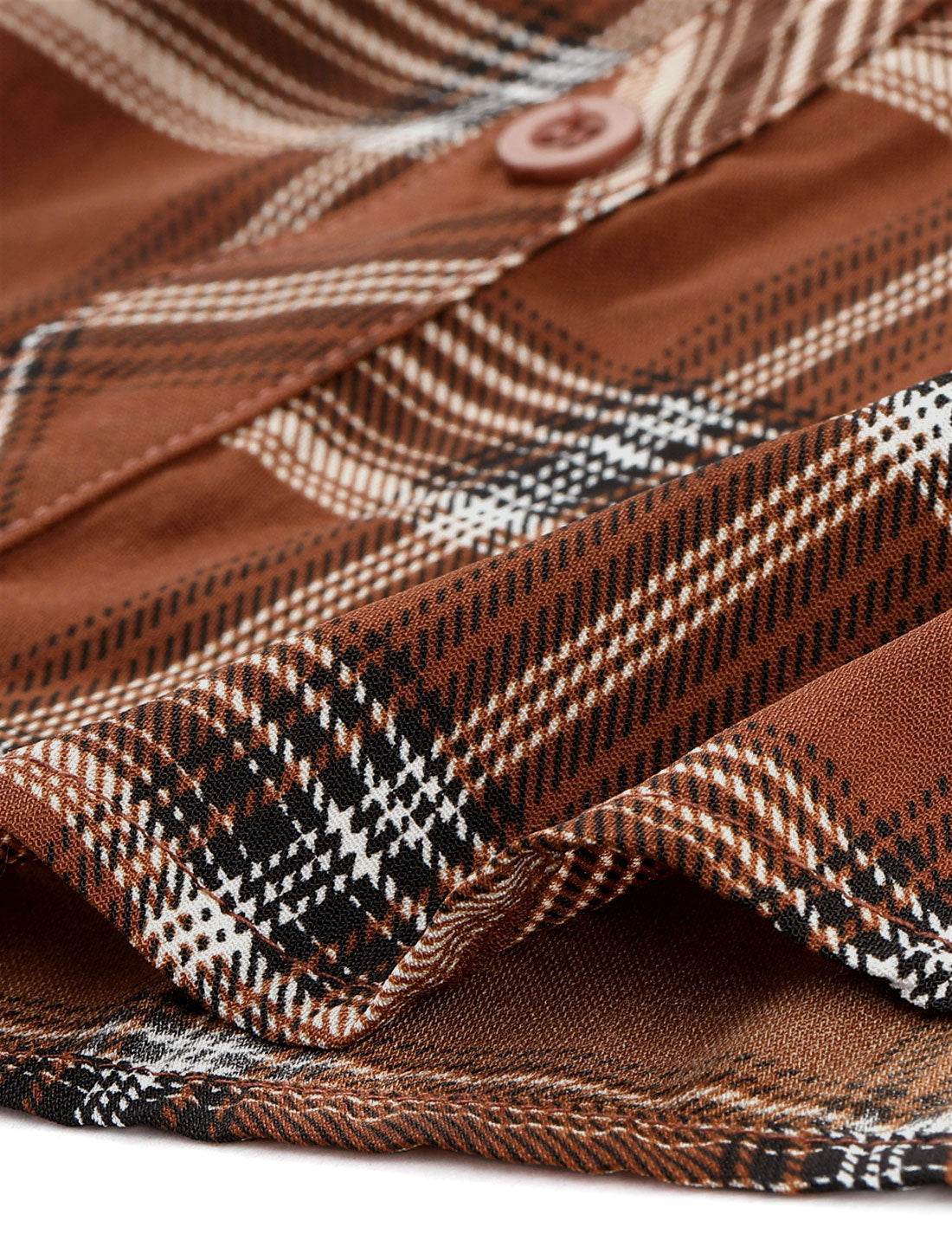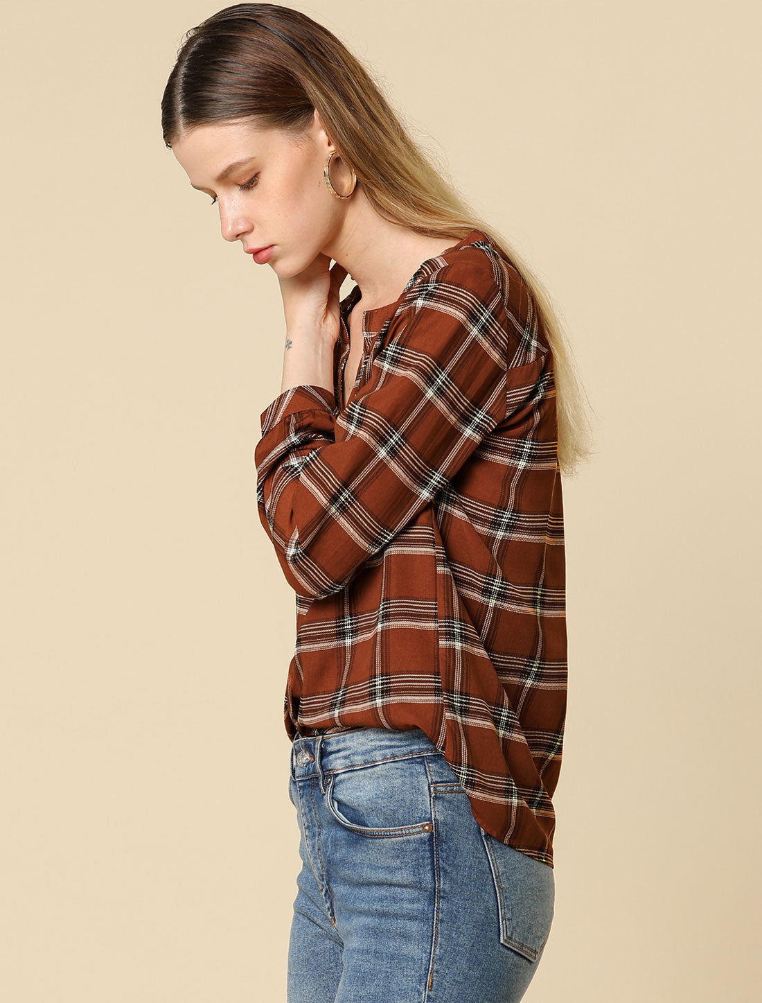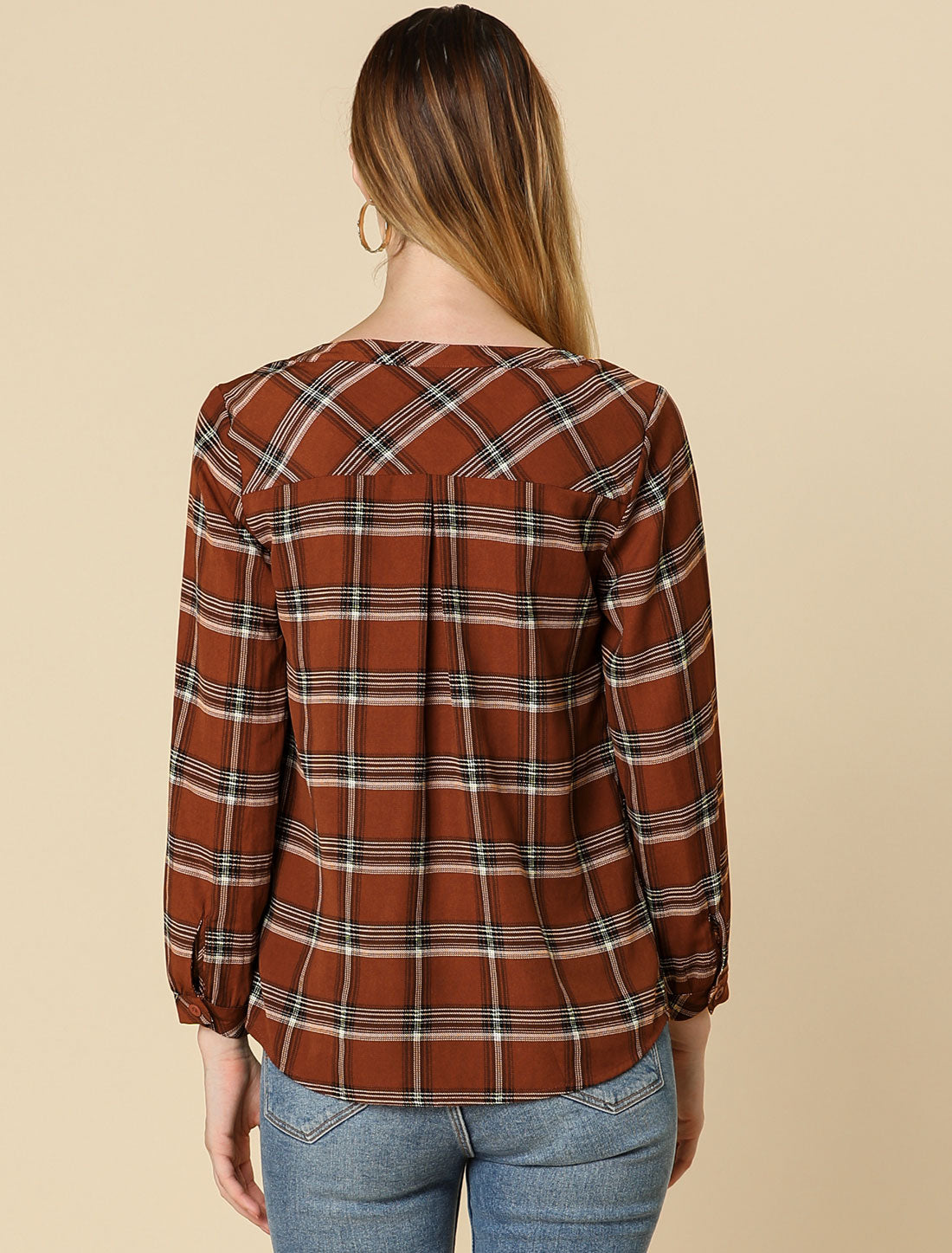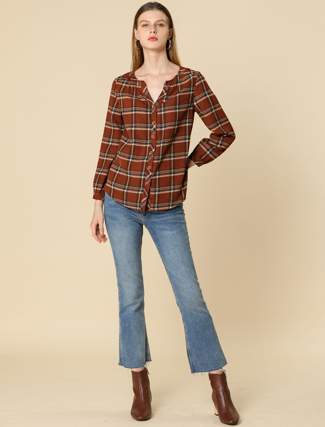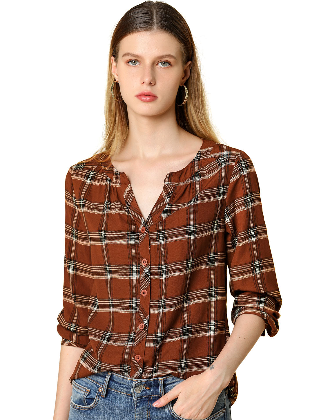 Women's Plaid Shirt Button Up V Neck Long Sleeve Top