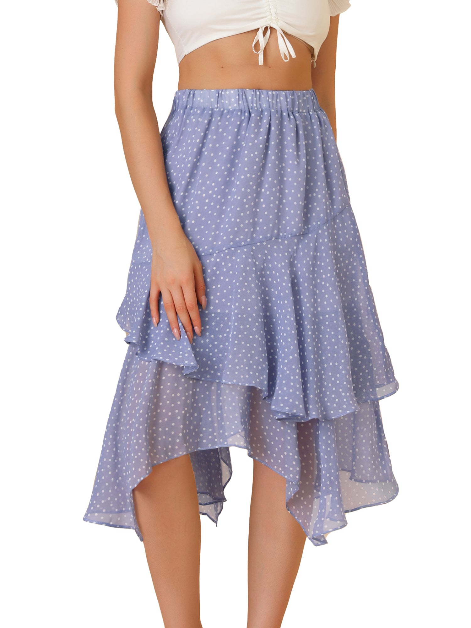 Women's Polka Dots Skirt Elastic High Waist Irregular Layered Chiffon Skirt
