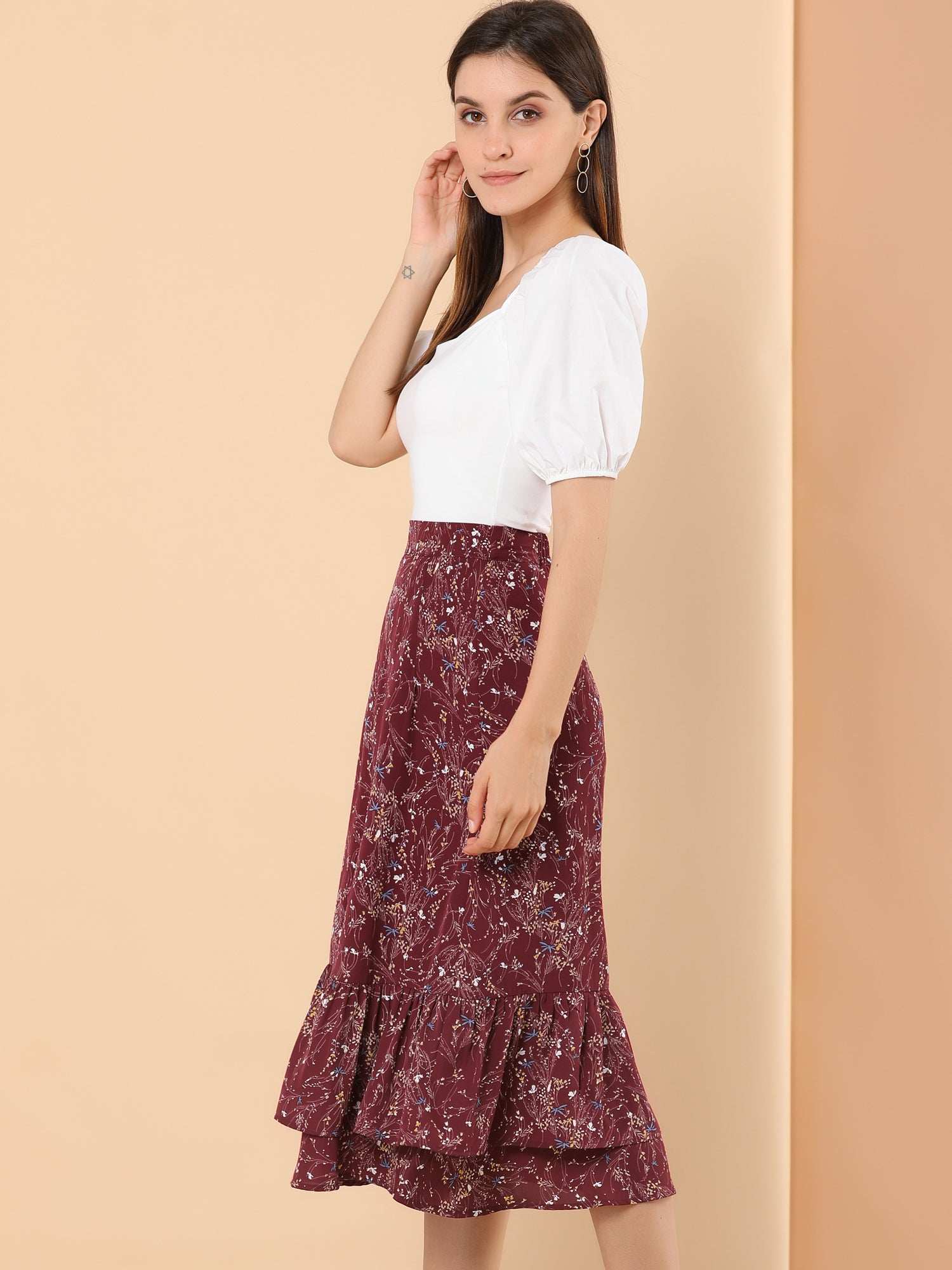 Women's Printed Skirt Summer Chiffon Ruffle Tiered Flowy Midi Skirt