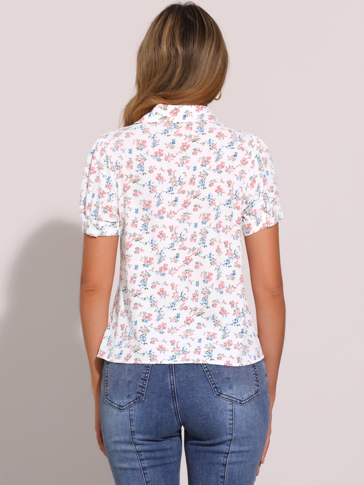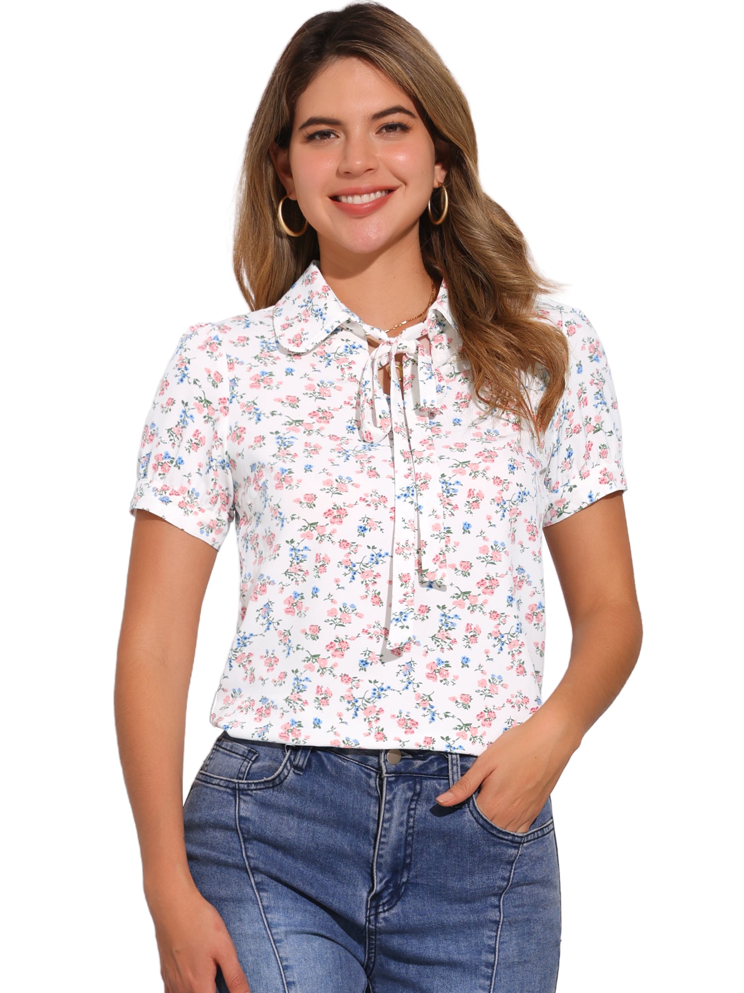 Women's Retro Printed Bow Tie Peter Pan Collar Chiffon Blouse Shirt