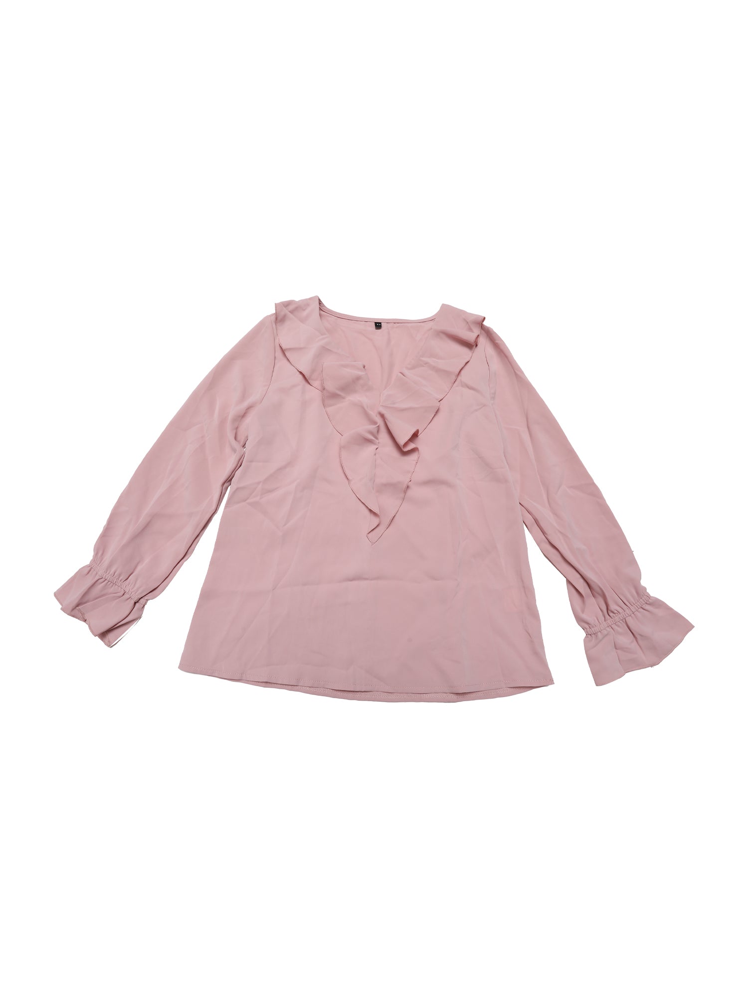 Women's Ruffle Blouse Elegant V Neck Long Sleeve Casual Dressy Top