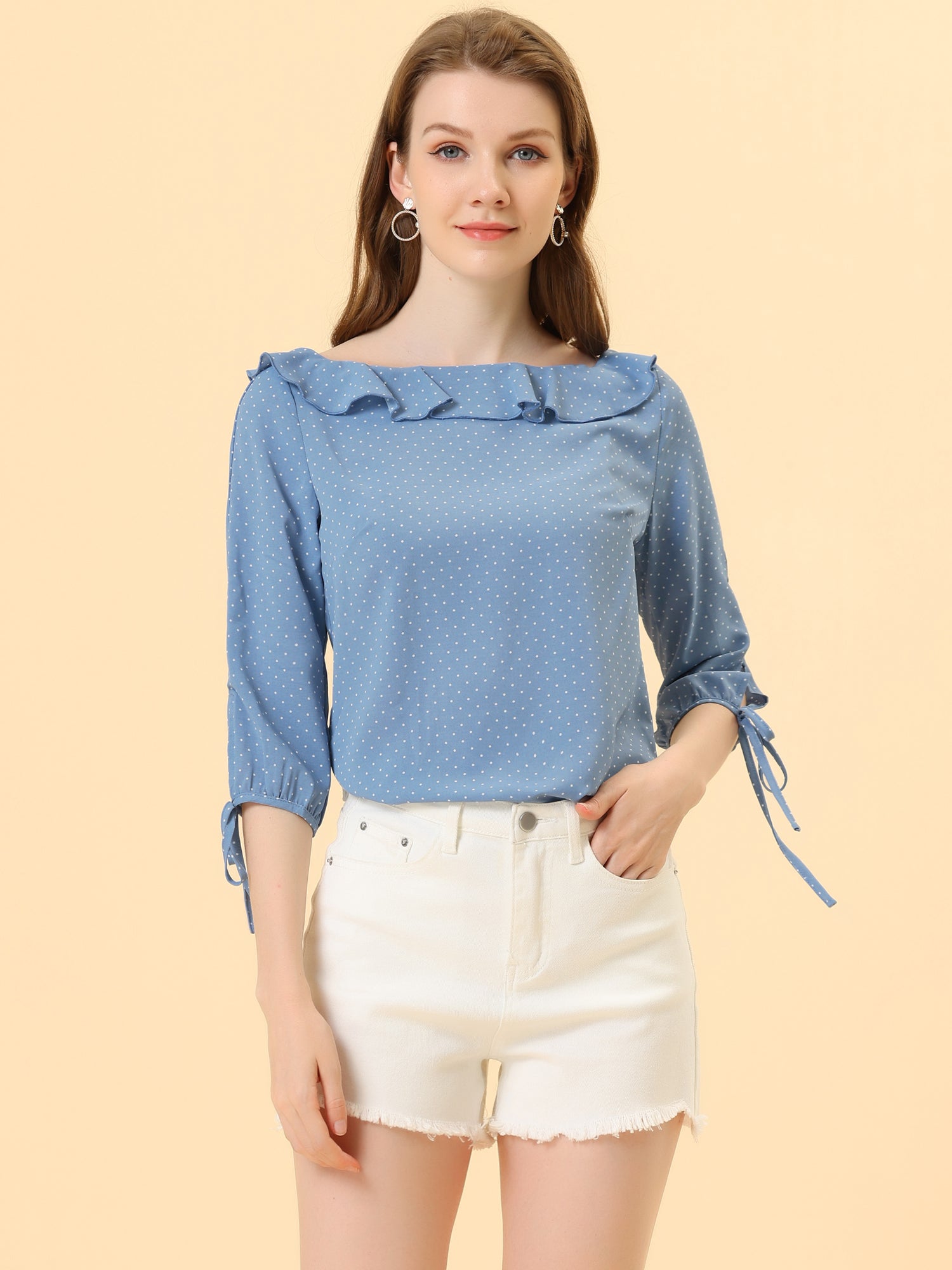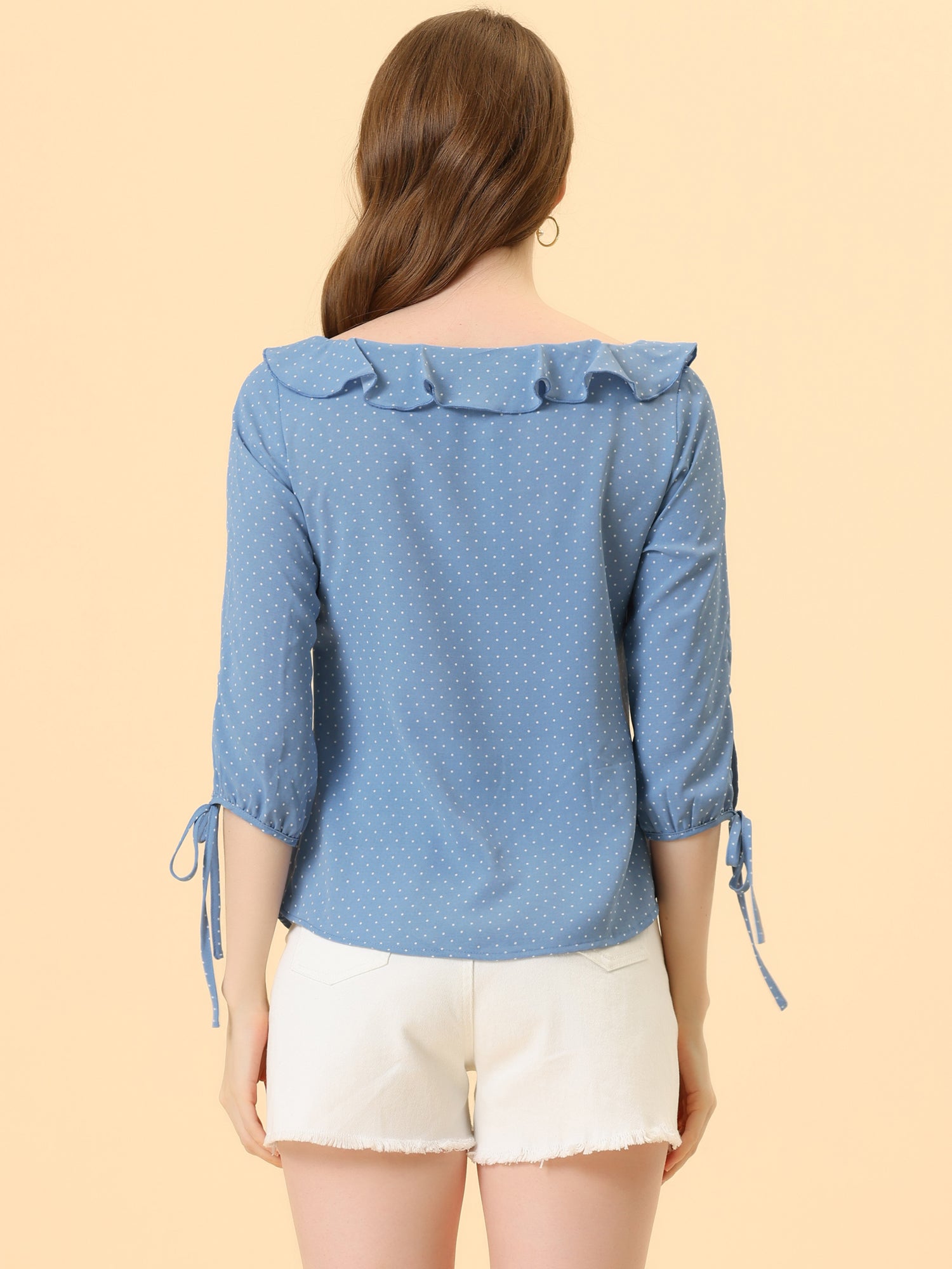 Women's Ruffled Collar Polka Dots 3/4 Sleeve Blouse