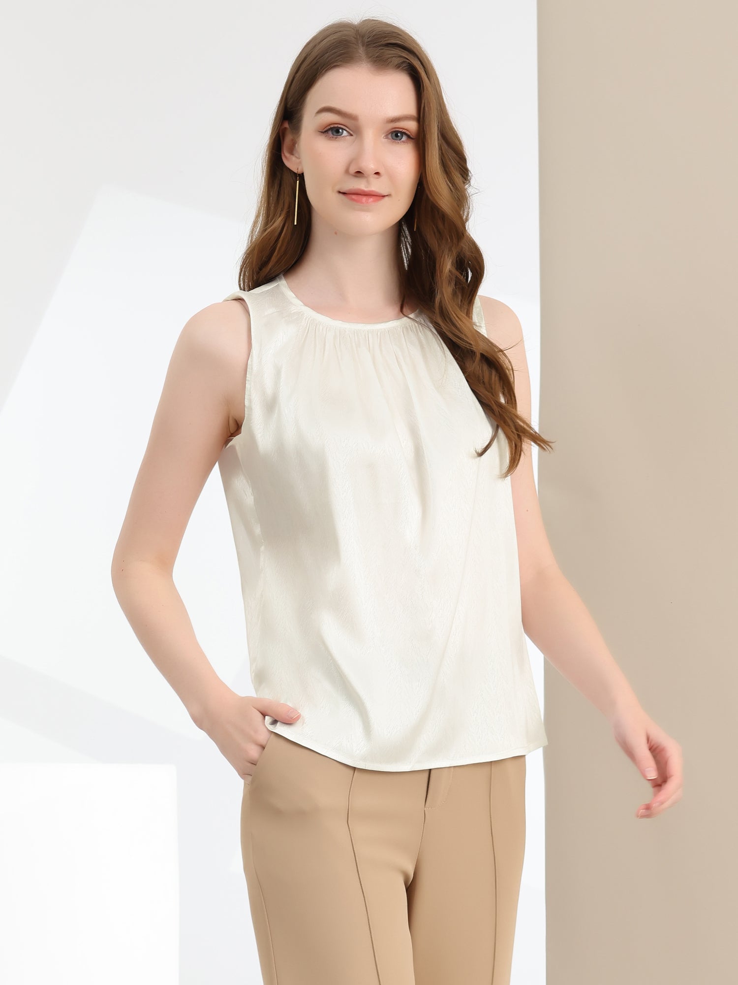 Women's Satin Sleeveless Work Office Pleated Vest Blouse Tank Top