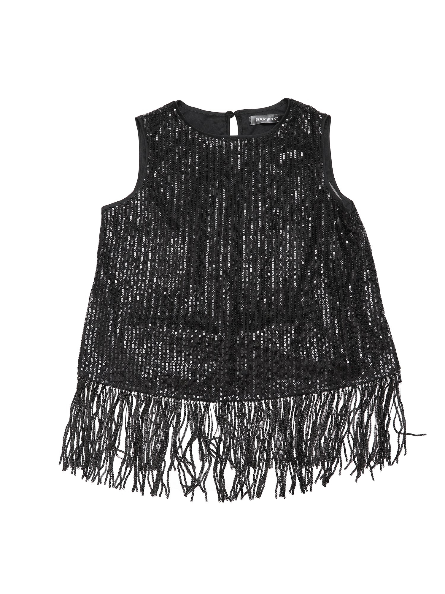 Women's Sequin Top Party Fringe Hem Sleeveless Round Neck Club Tank