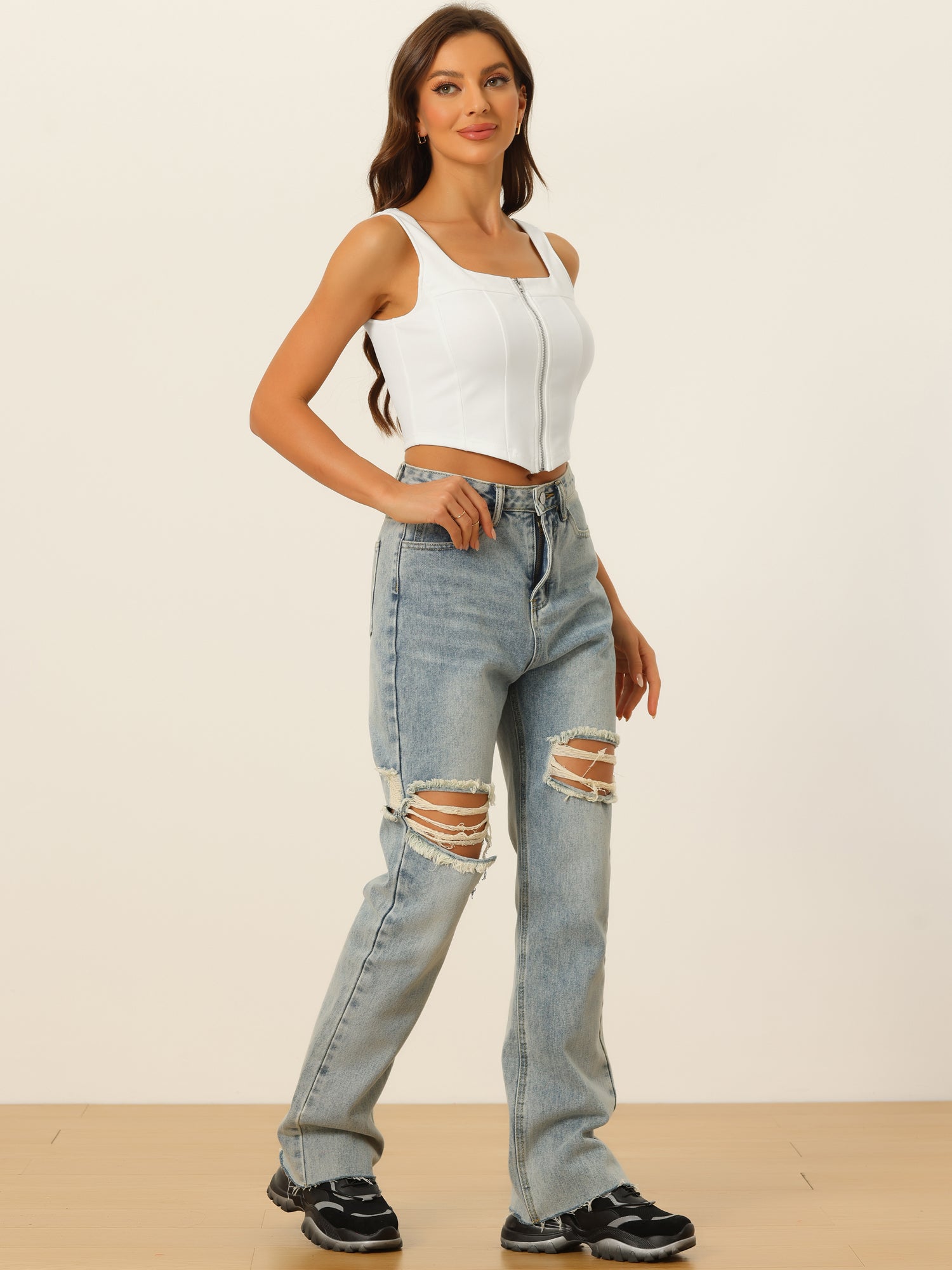 Women's Square Neck Asymmetrical Hem Zip Front Crop Cami Tank Top