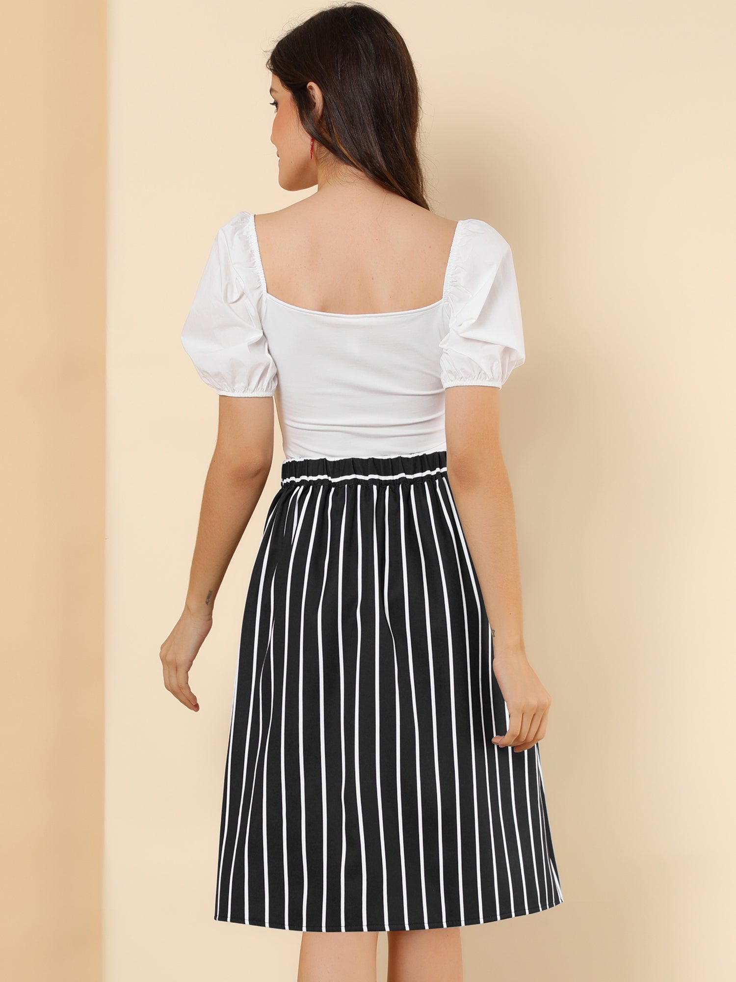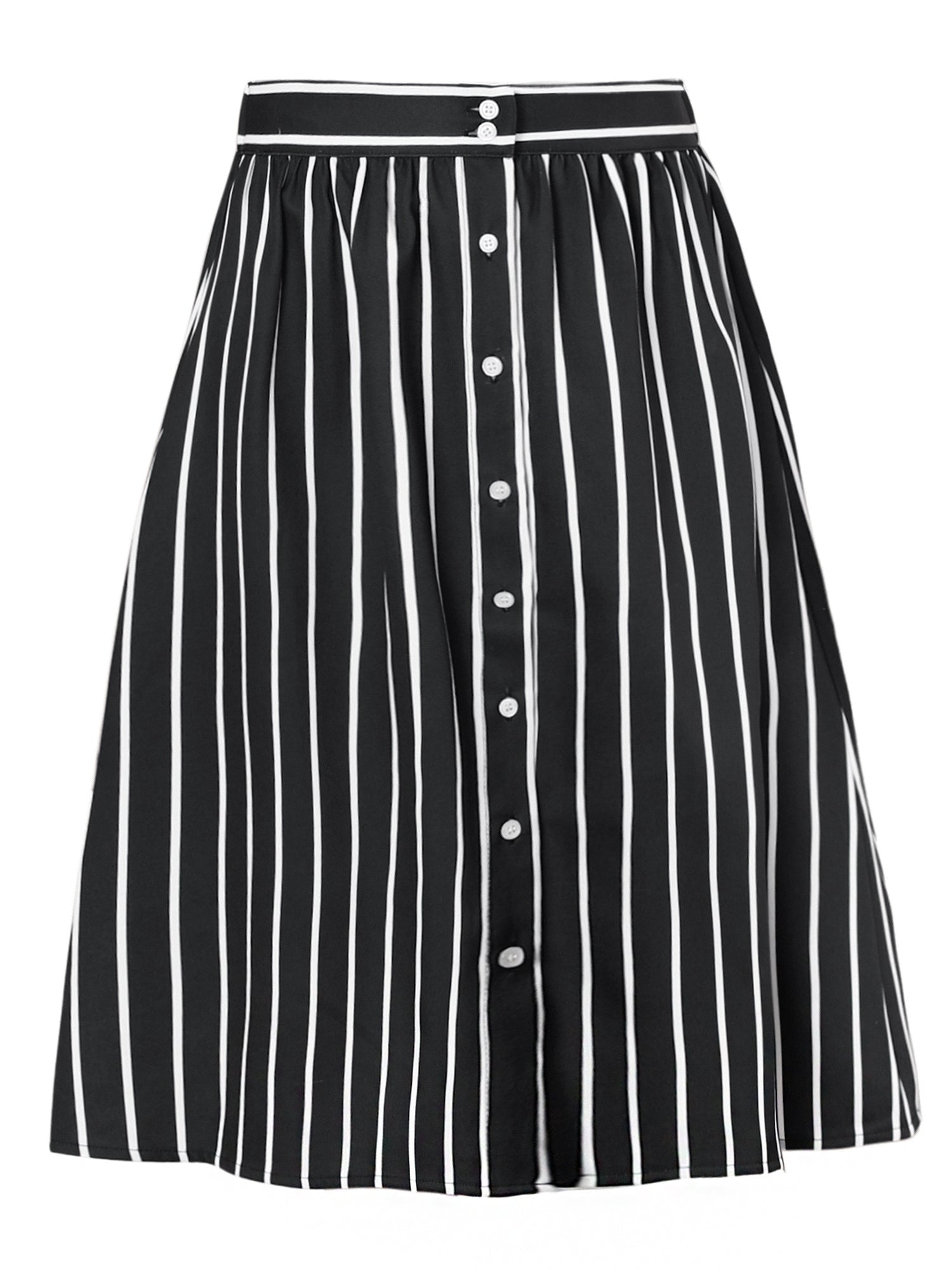 Women's Striped Button Front Elastic Back Waist A-Line Midi Skirt