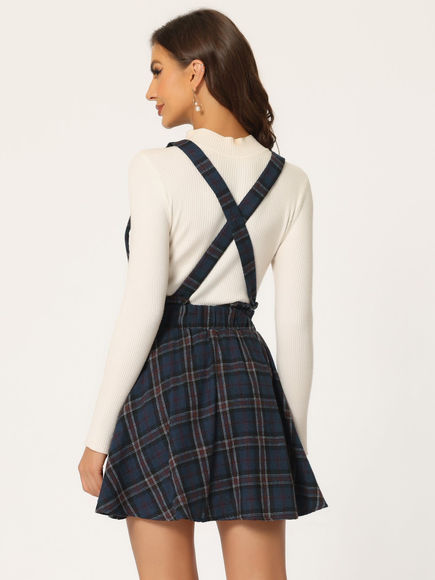 Women's Tartan Skirt Gothic Plaid High Waist Detachable Suspender Skirts