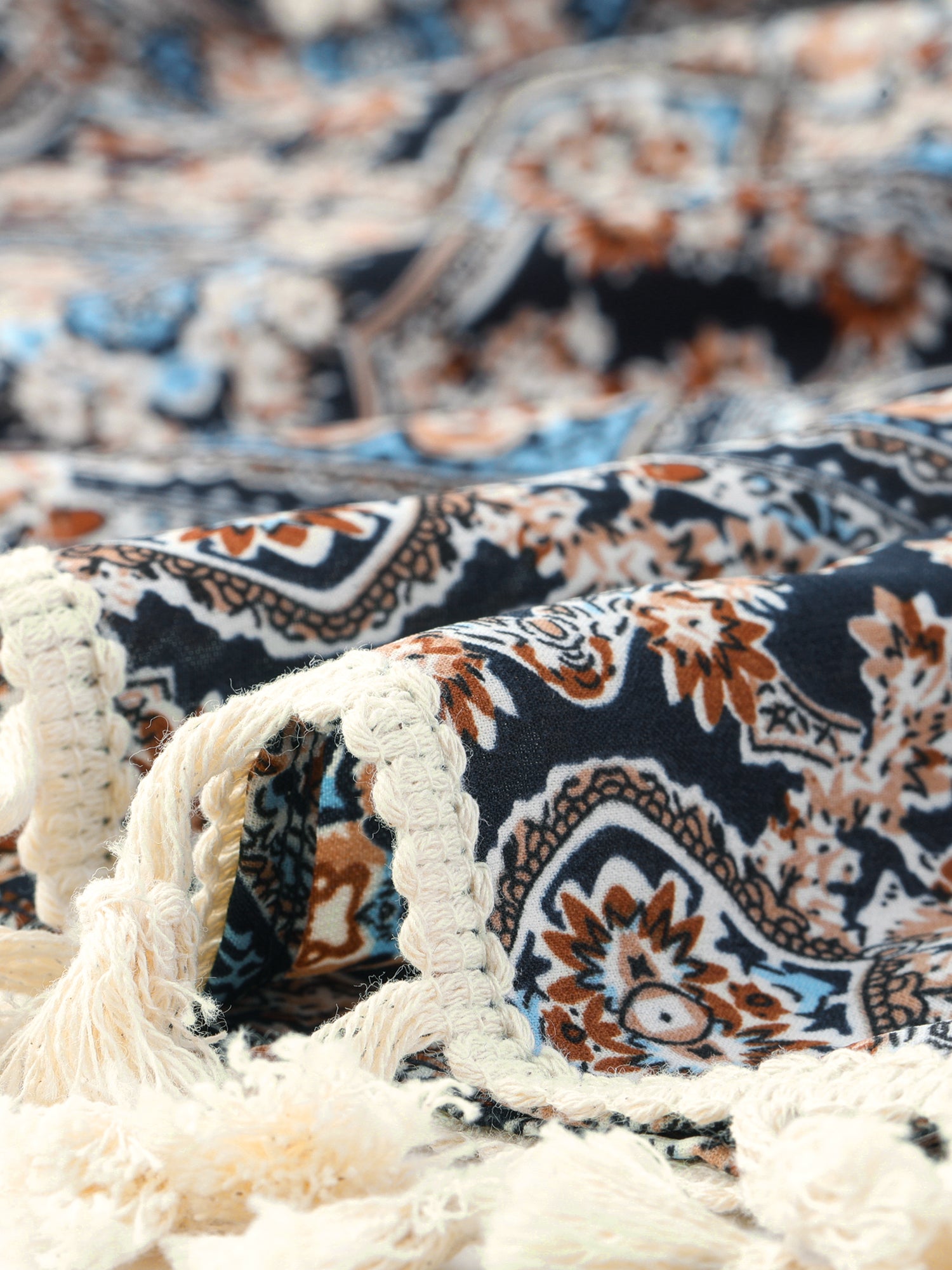 Women's Tiered Midi Skirts Elastic Waist Tassel Fringe Boho Skirt