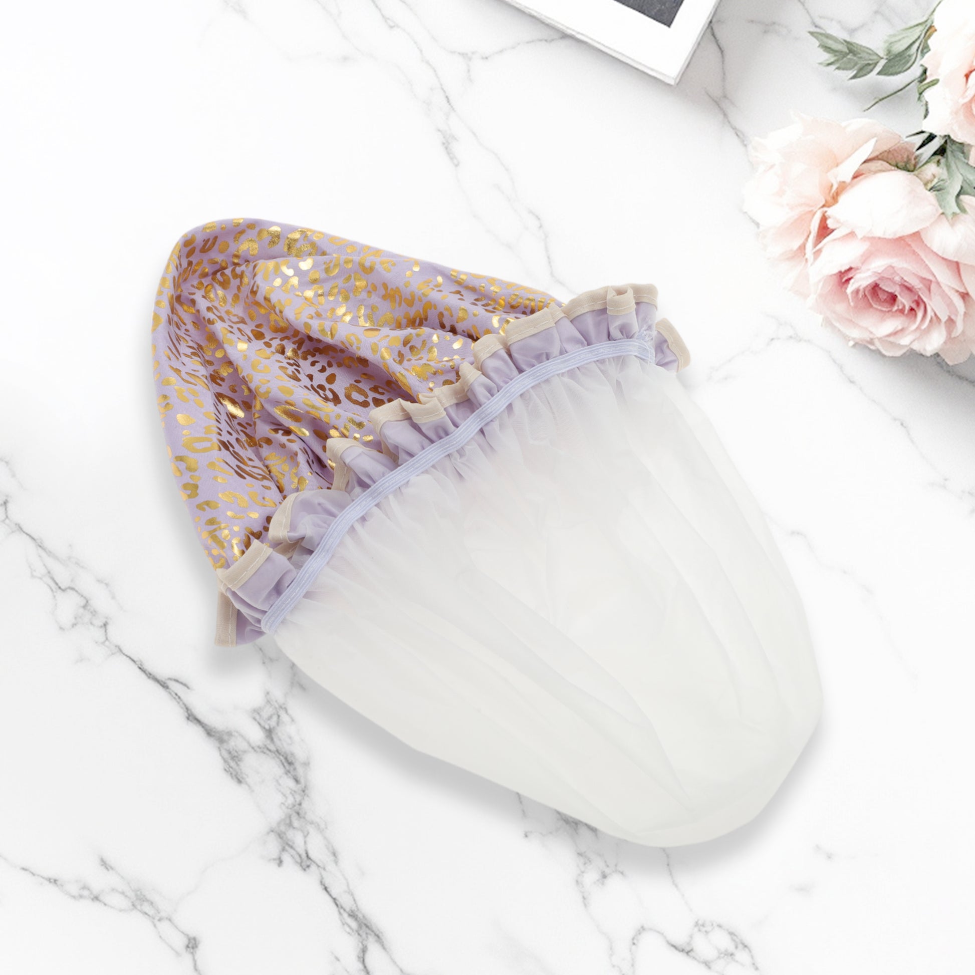 1 Pc Reusable Leopard Spots Shower Cap for Shower Purple