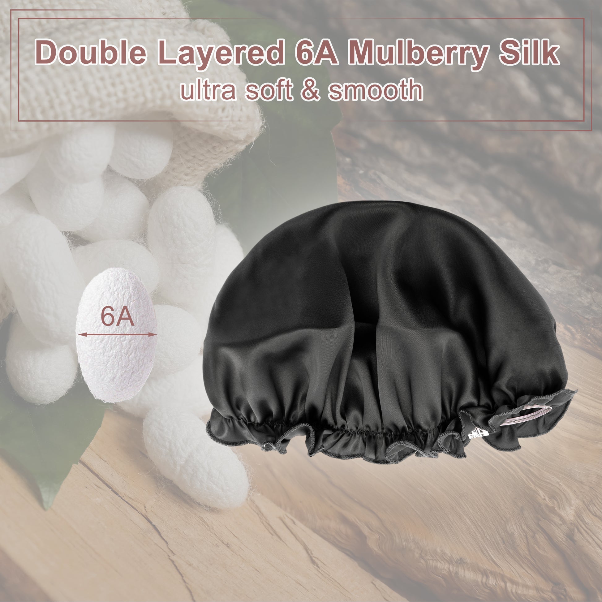 1 Pc Shower Cap, Sleep Caps with Adjustable Elastic Bands Black
