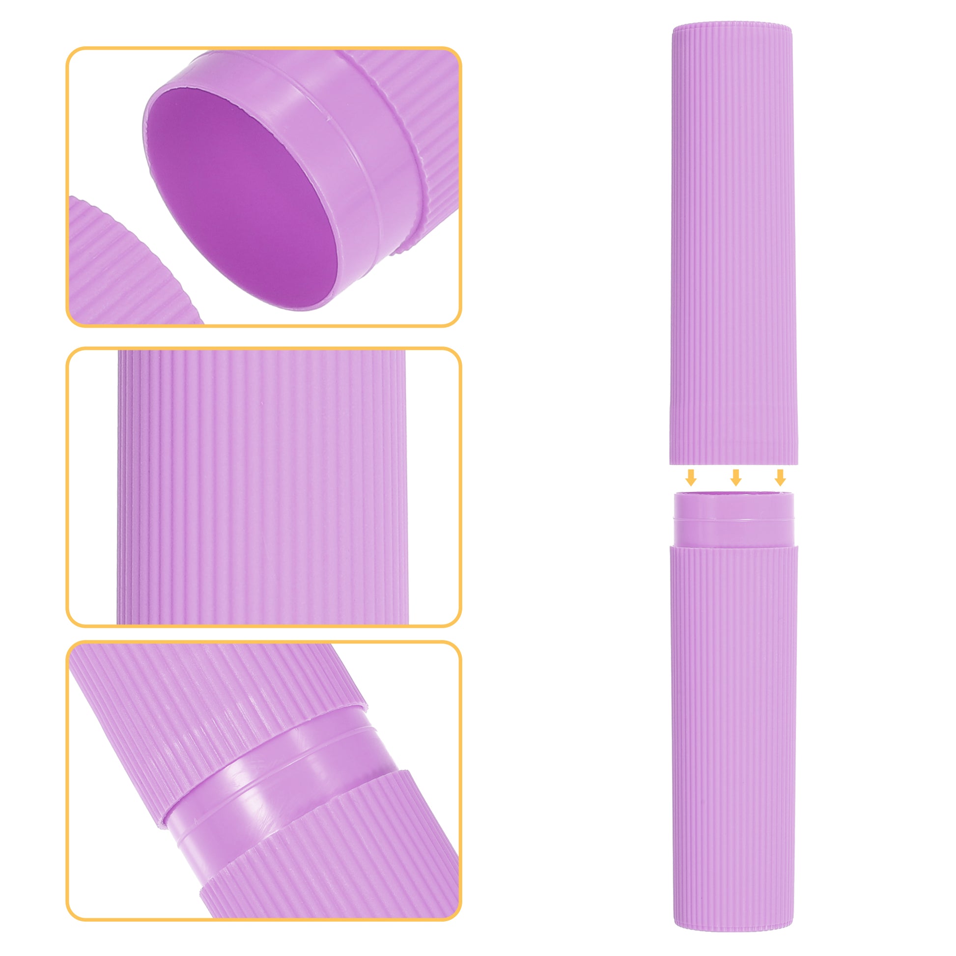 1 Pc Vertical Stripe Plastic Toothbrush Case for Travel 7.87"x1.18" Purple