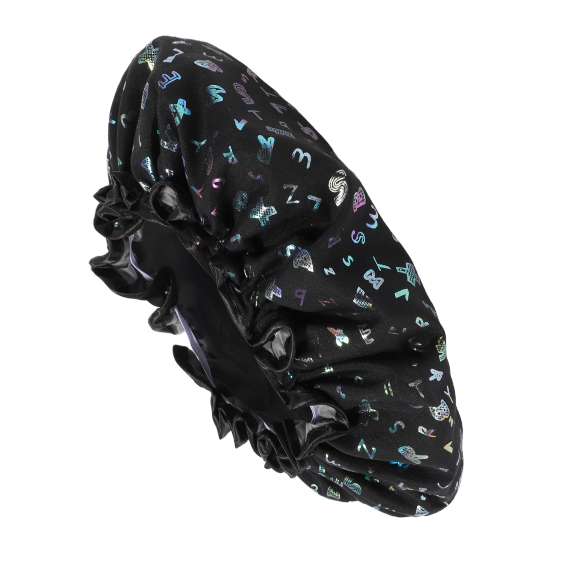 1 Pc Women Double Layer Alphabet Pattern Shower Cap for Bathroom Vacation Black