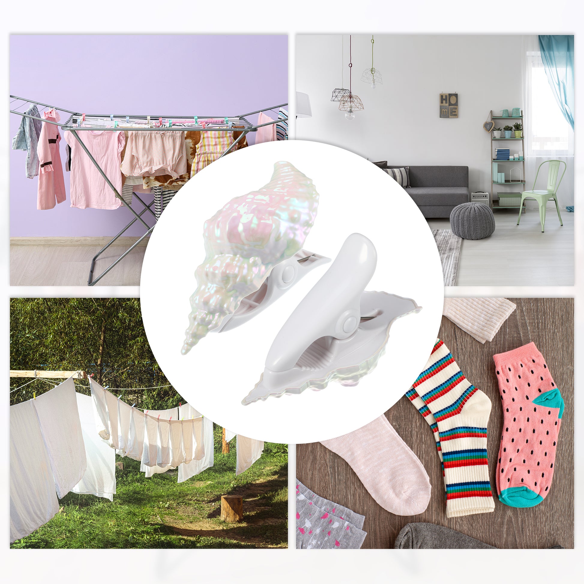 Conch ABS Metal Clothespins for Clothes 4.65"x3.15"x2.20" 4 Pcs White