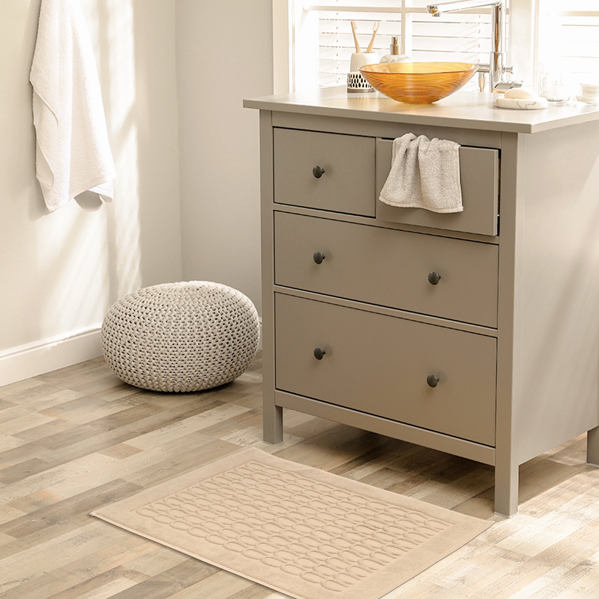 - This Versatile Luxury piece is more than just a mat. It transforms your bathroom, adding style and plushness whether placed by the tub, shower, or sink