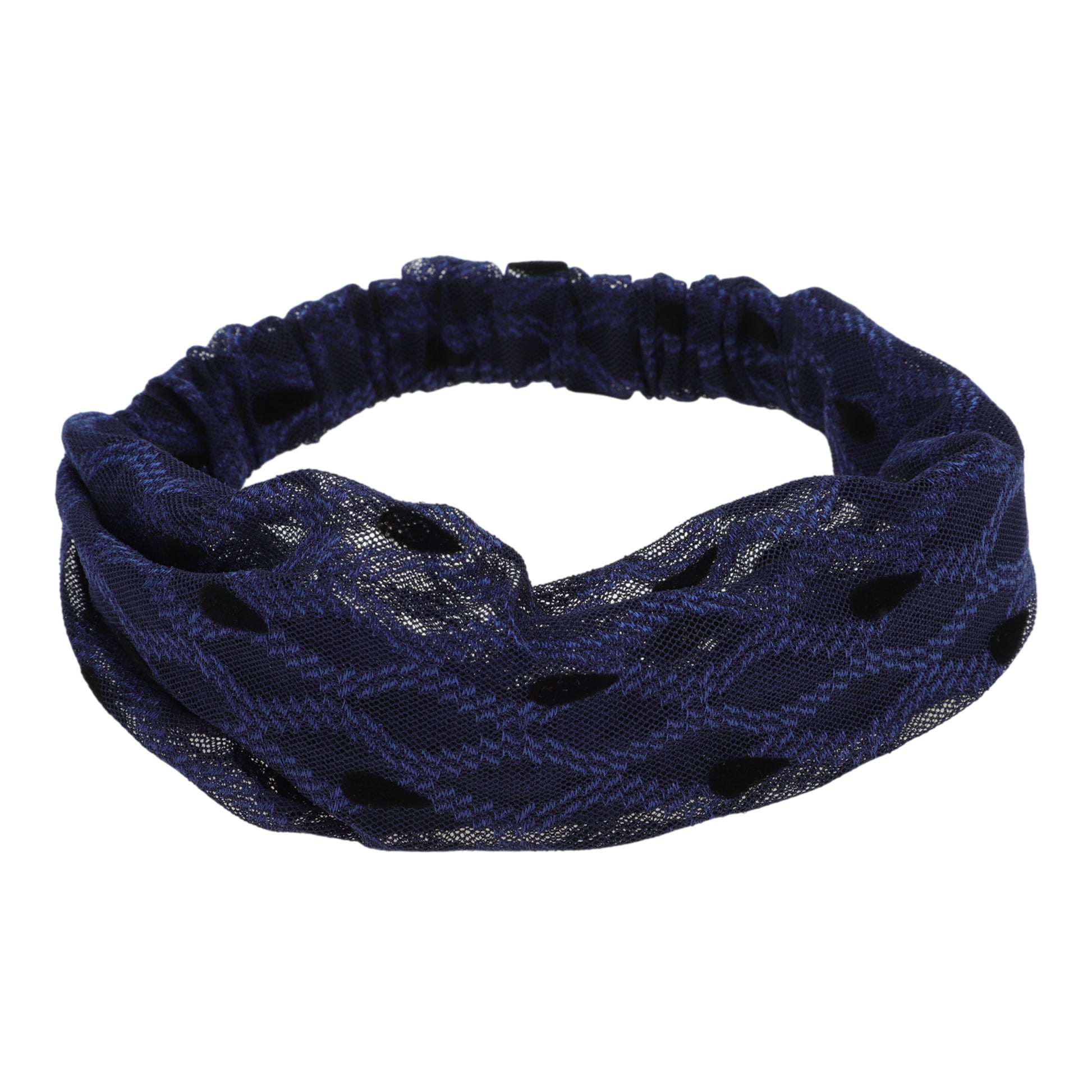 Dots Mesh Lace Wide Headband for Women Navy Blue 1 Pc