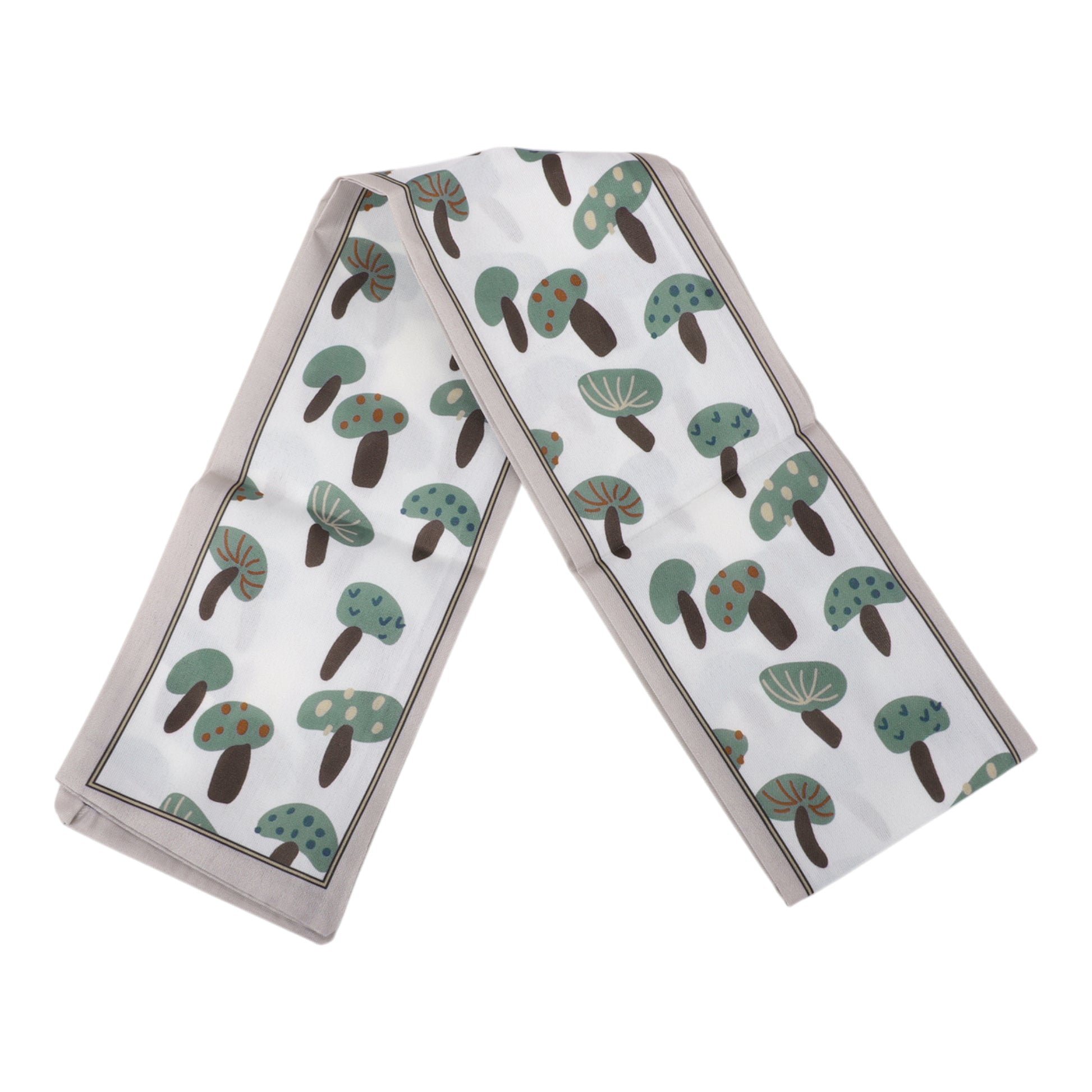 Mushrooms Satin Headband for Women Neckerchief Beige Coffee Color 1 Pc