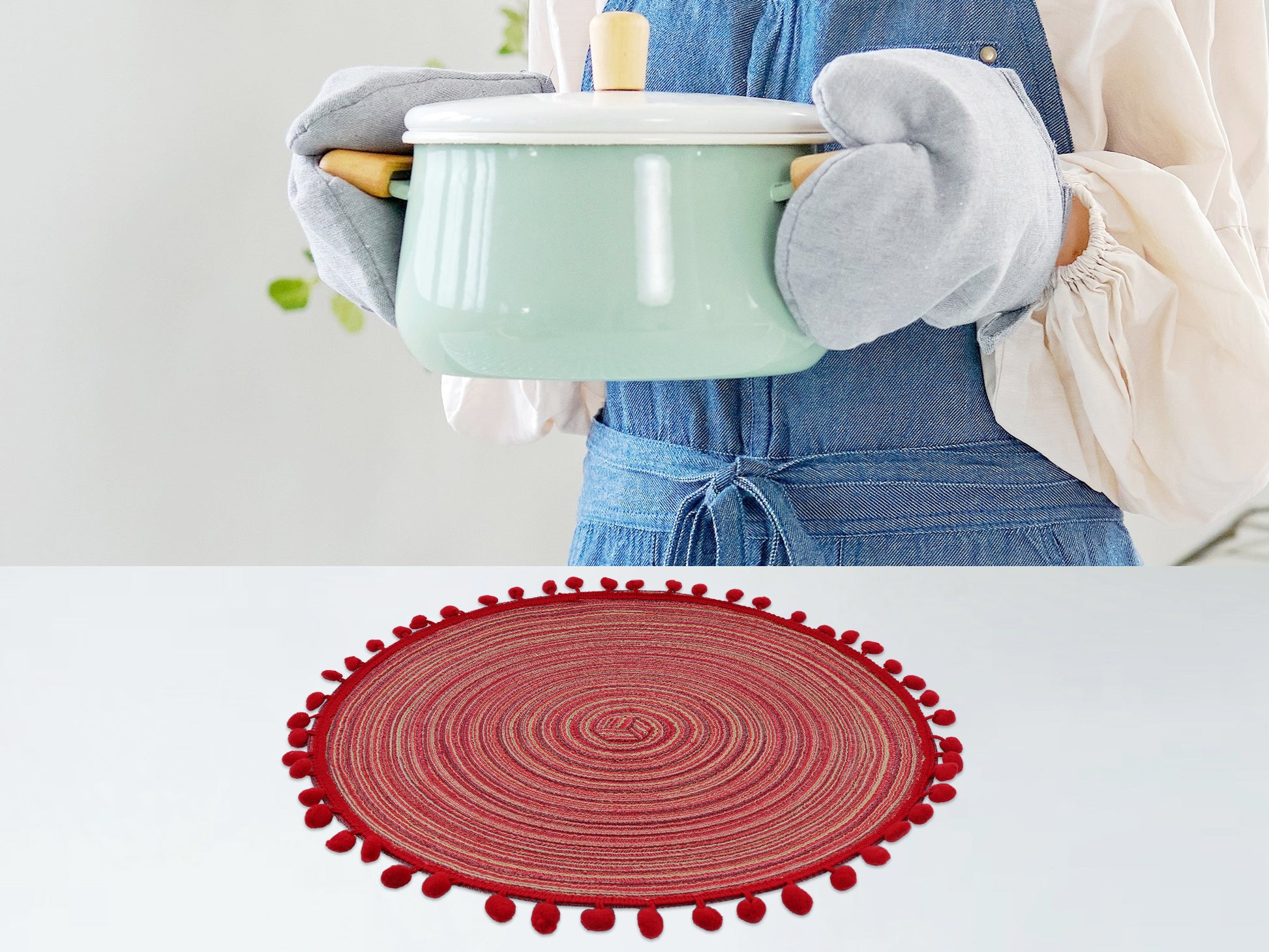 - Material:The Placemat is made of Polyester, which is thick, and has well-waterproof and wrinkle-resistant features,with little balls around them,ensuring exceptional quality and long-lasting durability