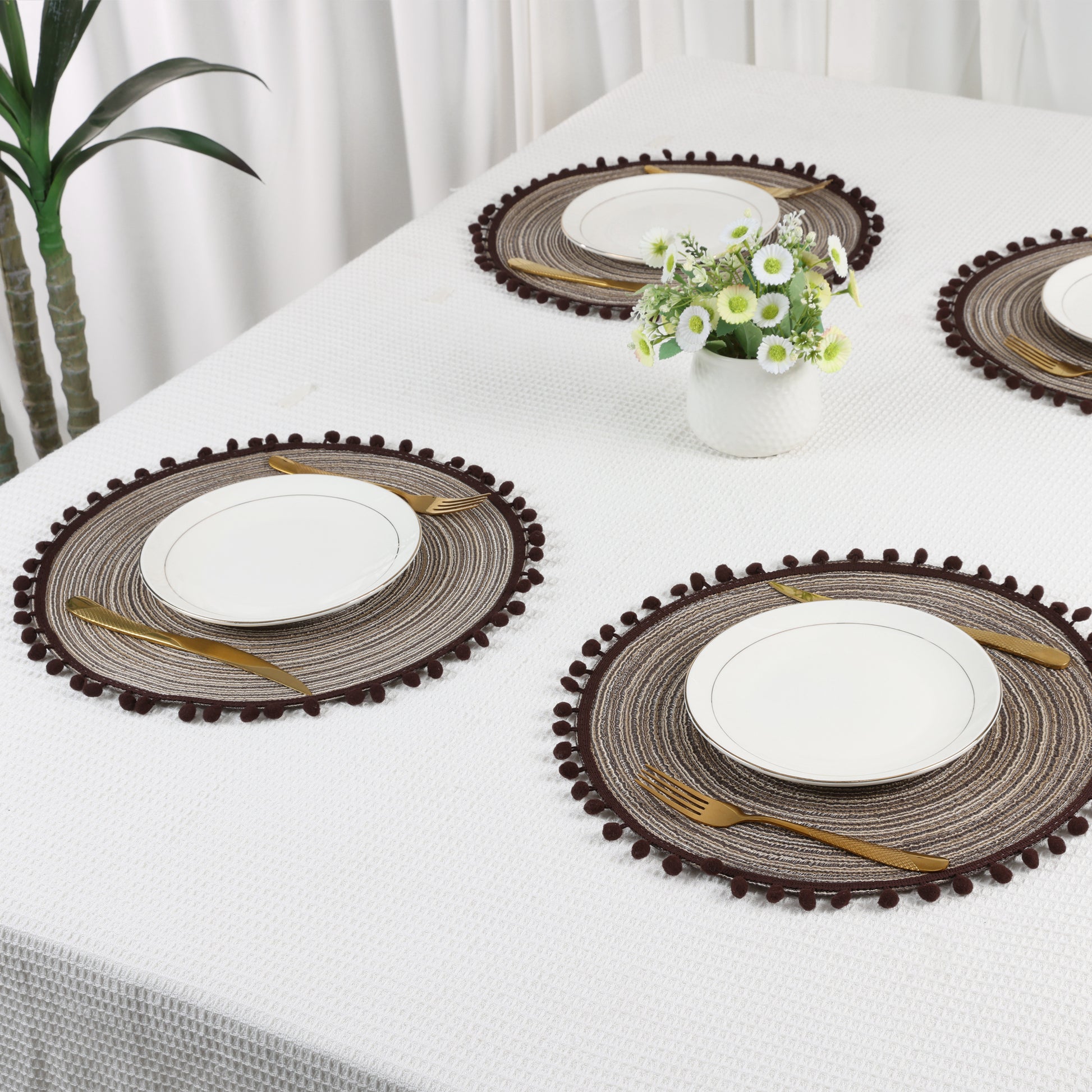 - Material:The Placemat is made of Polyester, which is thick, and has well-waterproof and wrinkle-resistant features,with little balls around them,ensuring exceptional quality and long-lasting durability