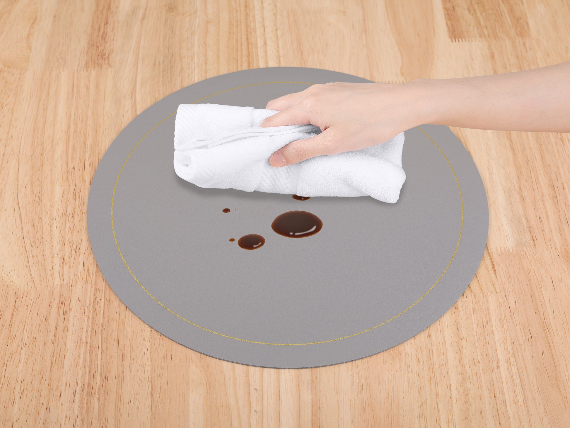 - The round placemats resist fading, and be dining room table decor. These wipetable placemats can be used by just wiping them off with a wet cloth or towel when debris is present, elevating your dining experience
