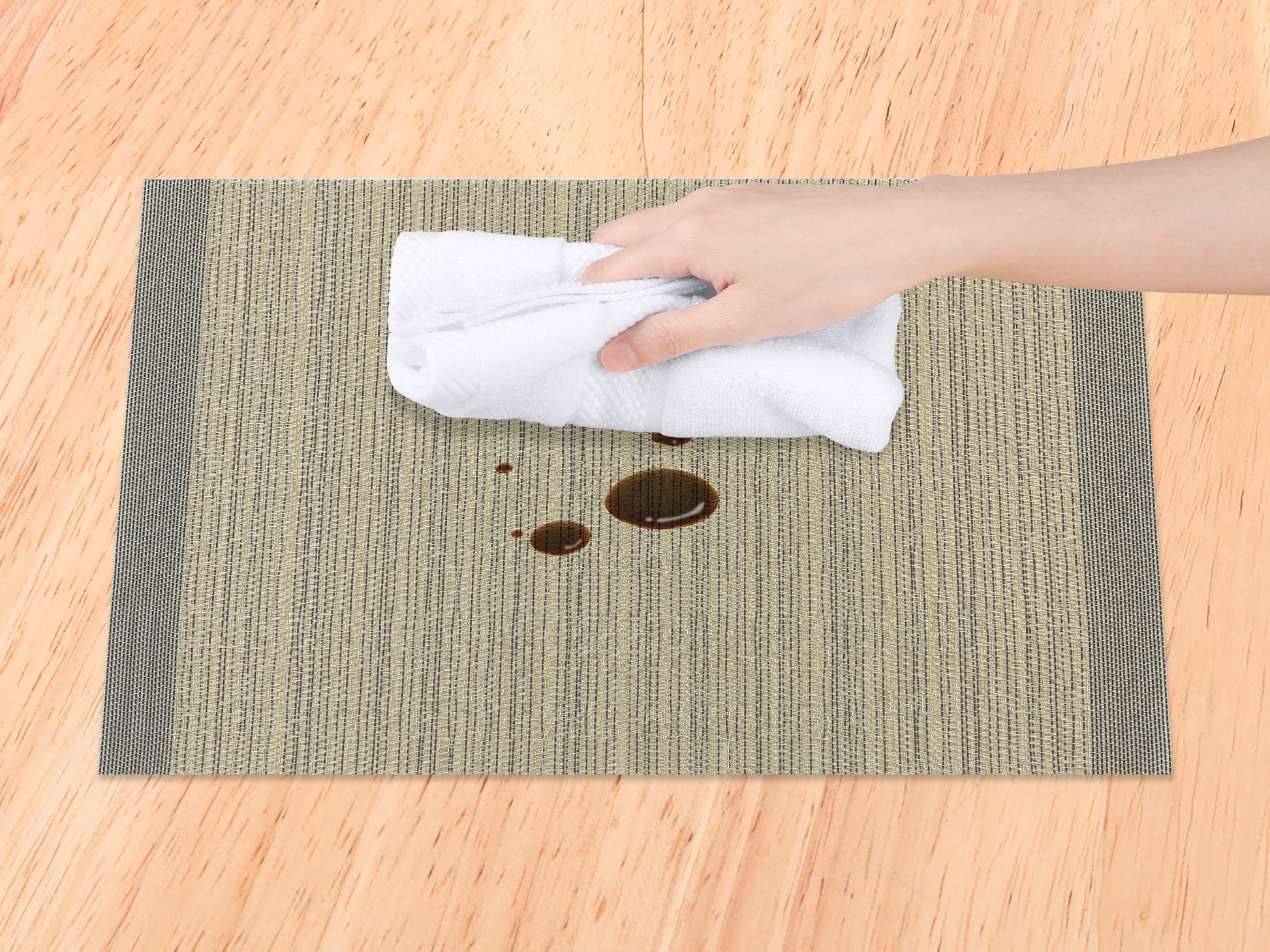 - These placemats can be used by just wiping them off with a wet cloth or towel when debris is present, elevating your dining experience