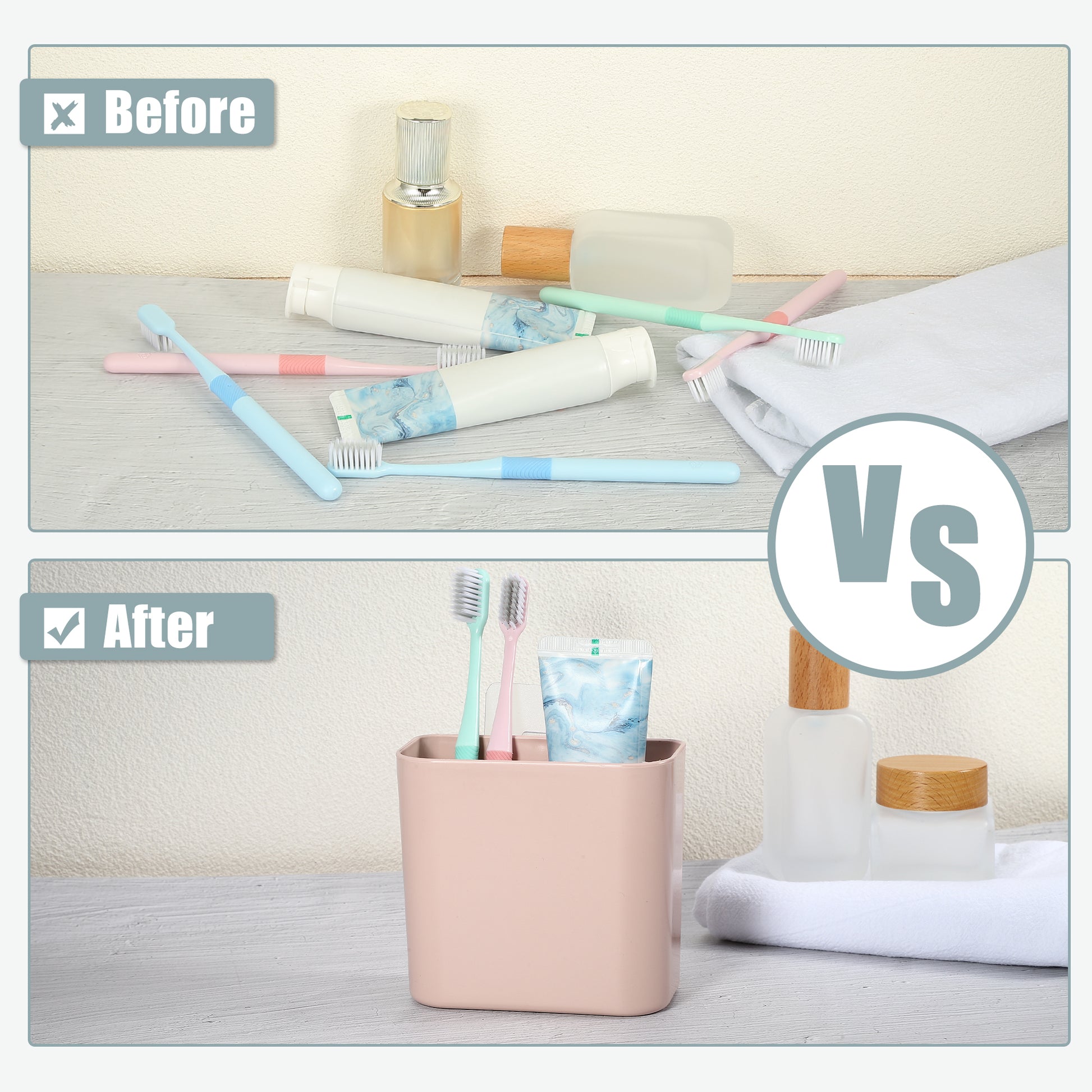 Self Adhesive Wall Mount Toothbrush Holder Stand for Bathroom, 4.65"x2.48"x4.25" Pink