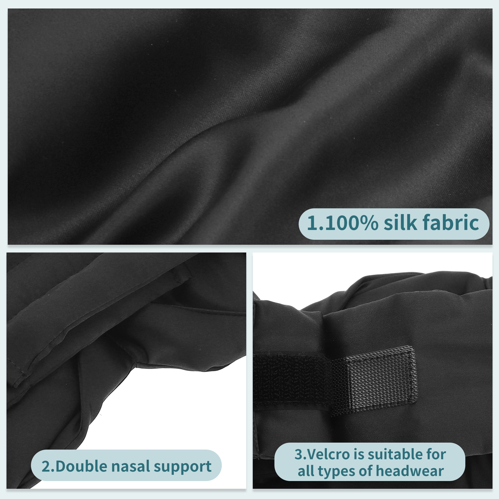 Sleep Eye Mask, Nature Silk Soft Large Wrap-Around 3D Eye Covers Black