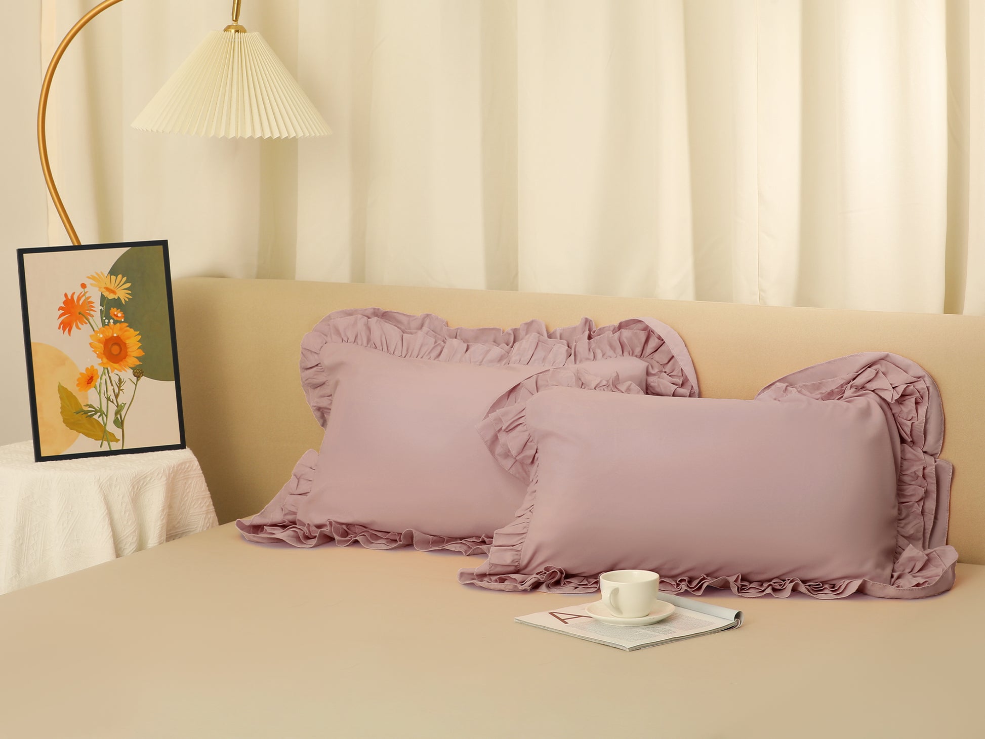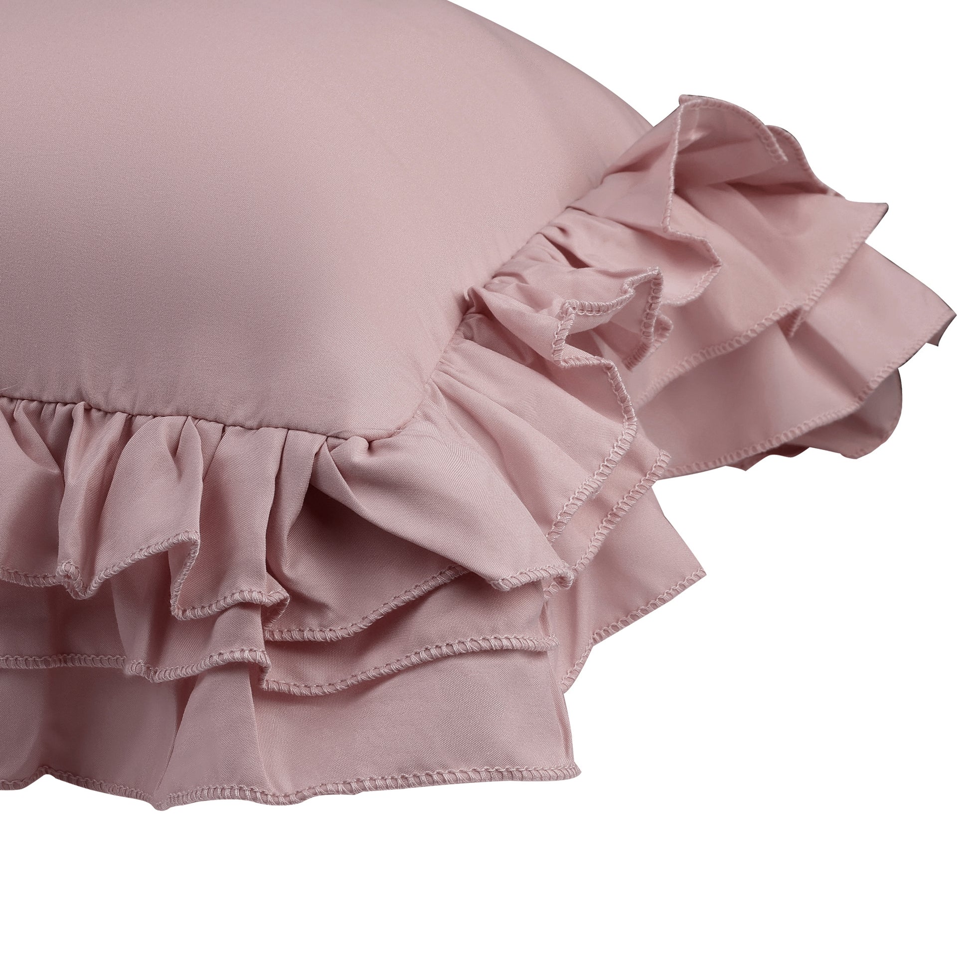 Triple Ruffle Pillowcases, Set of 2 Pillow Covers, Bedding Pillow Shams with Envelope Closure