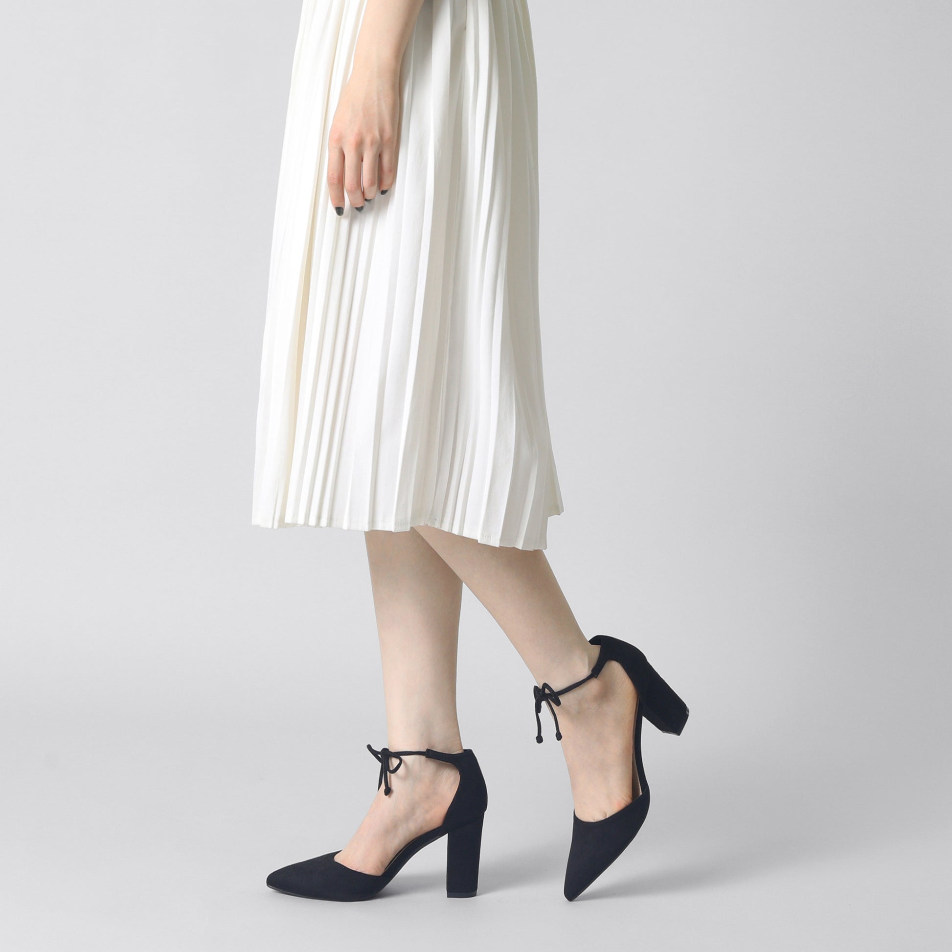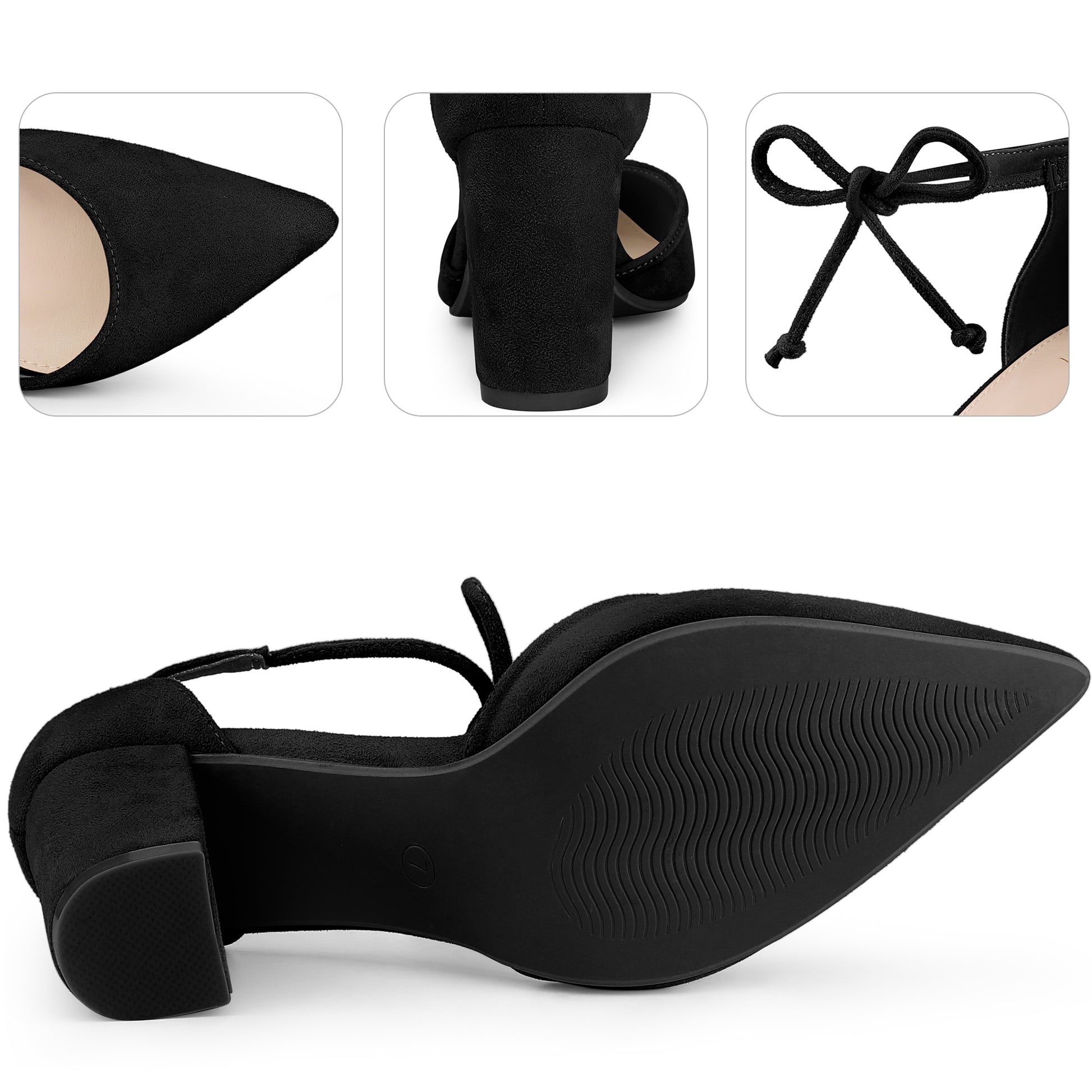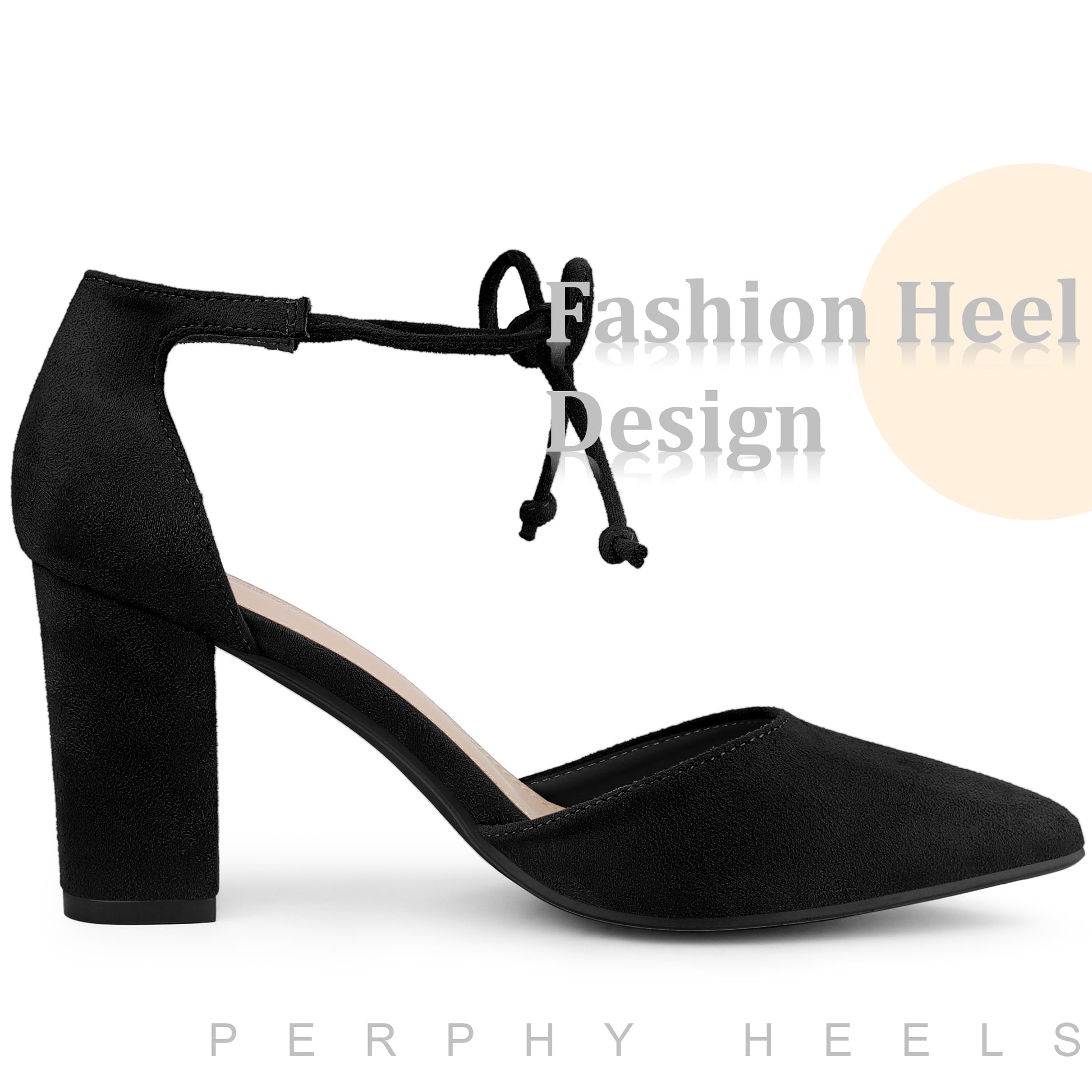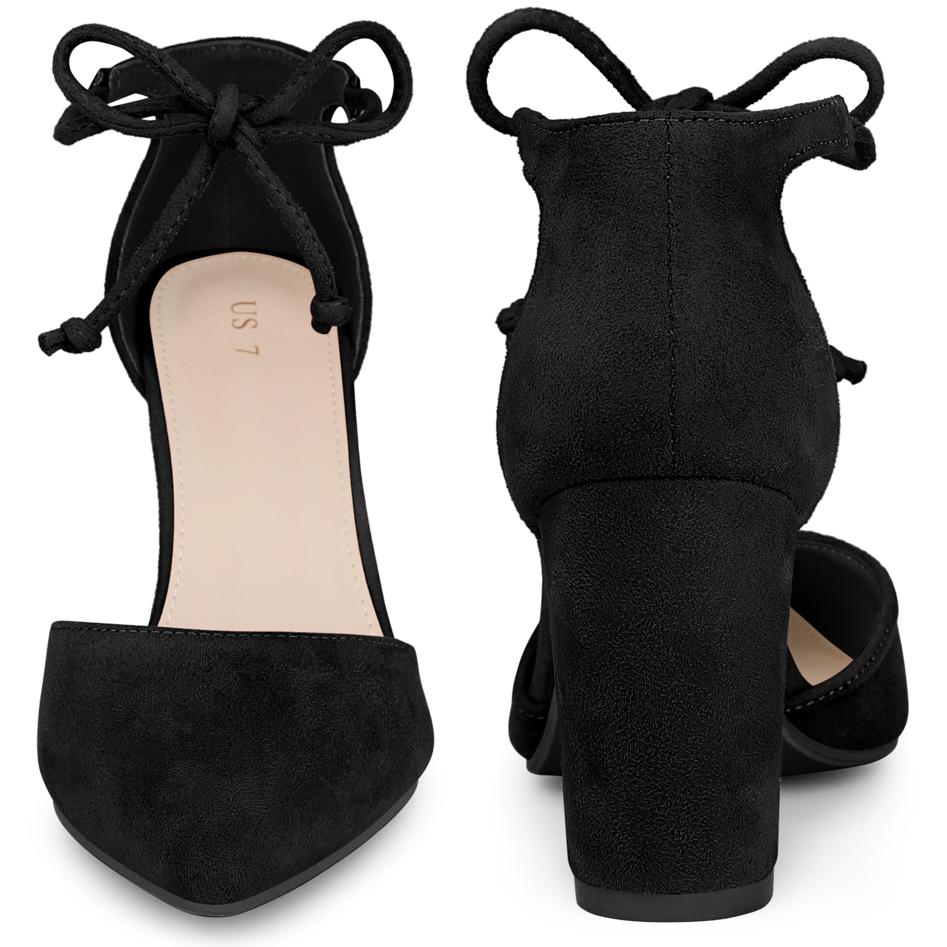 Women Ankle Tie Pointed Toe Chunky Heels Dress Pumps