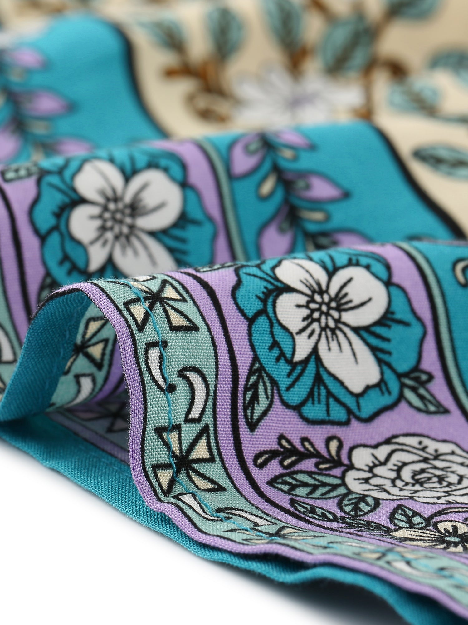 Women Plus Size Placed Pattern Bohemian Smock Waist V Neck Summer Midi Dress