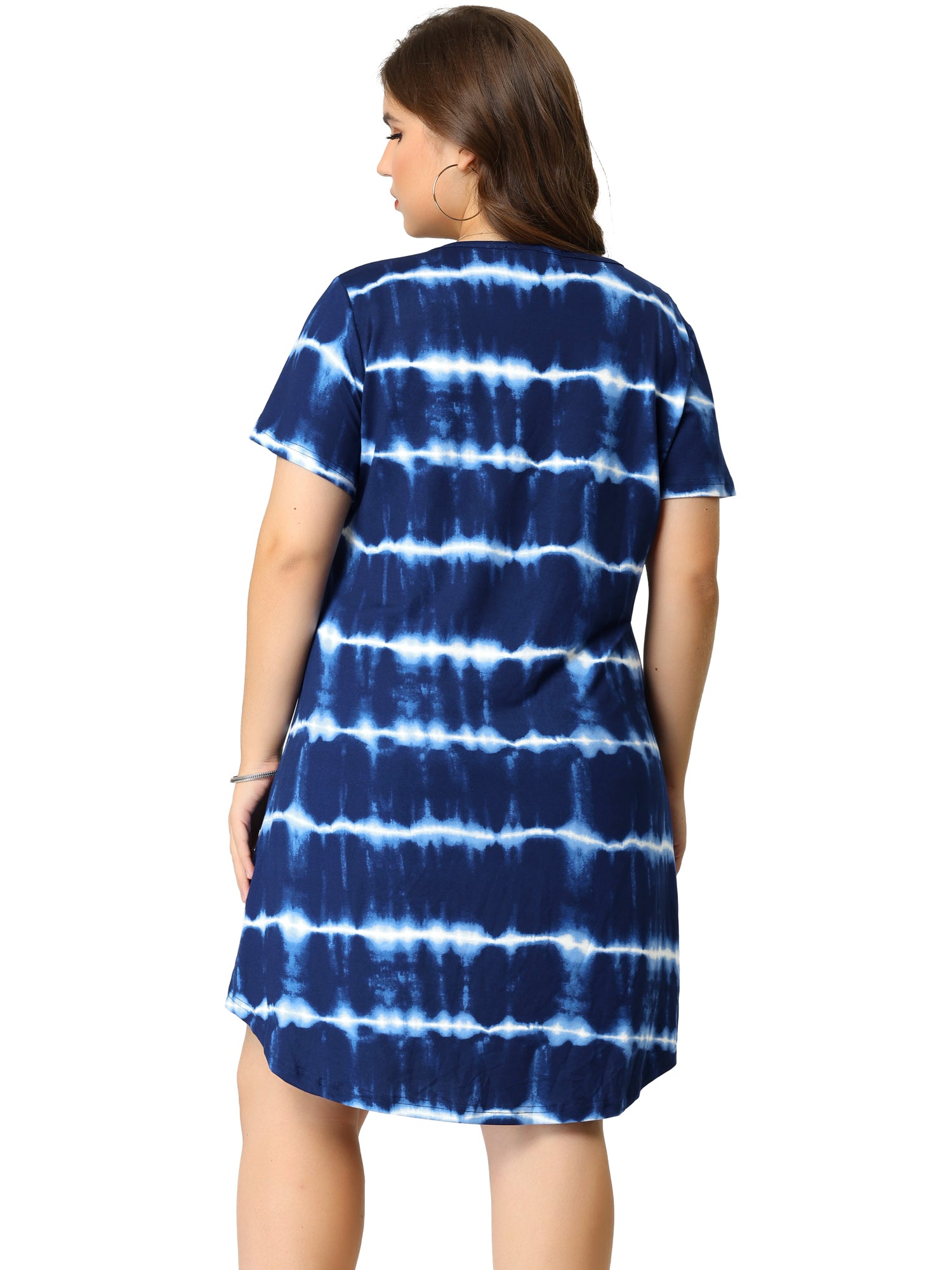 Women Plus Size Tie Dye Summer V Neck Short Sleeve Casual Dresses