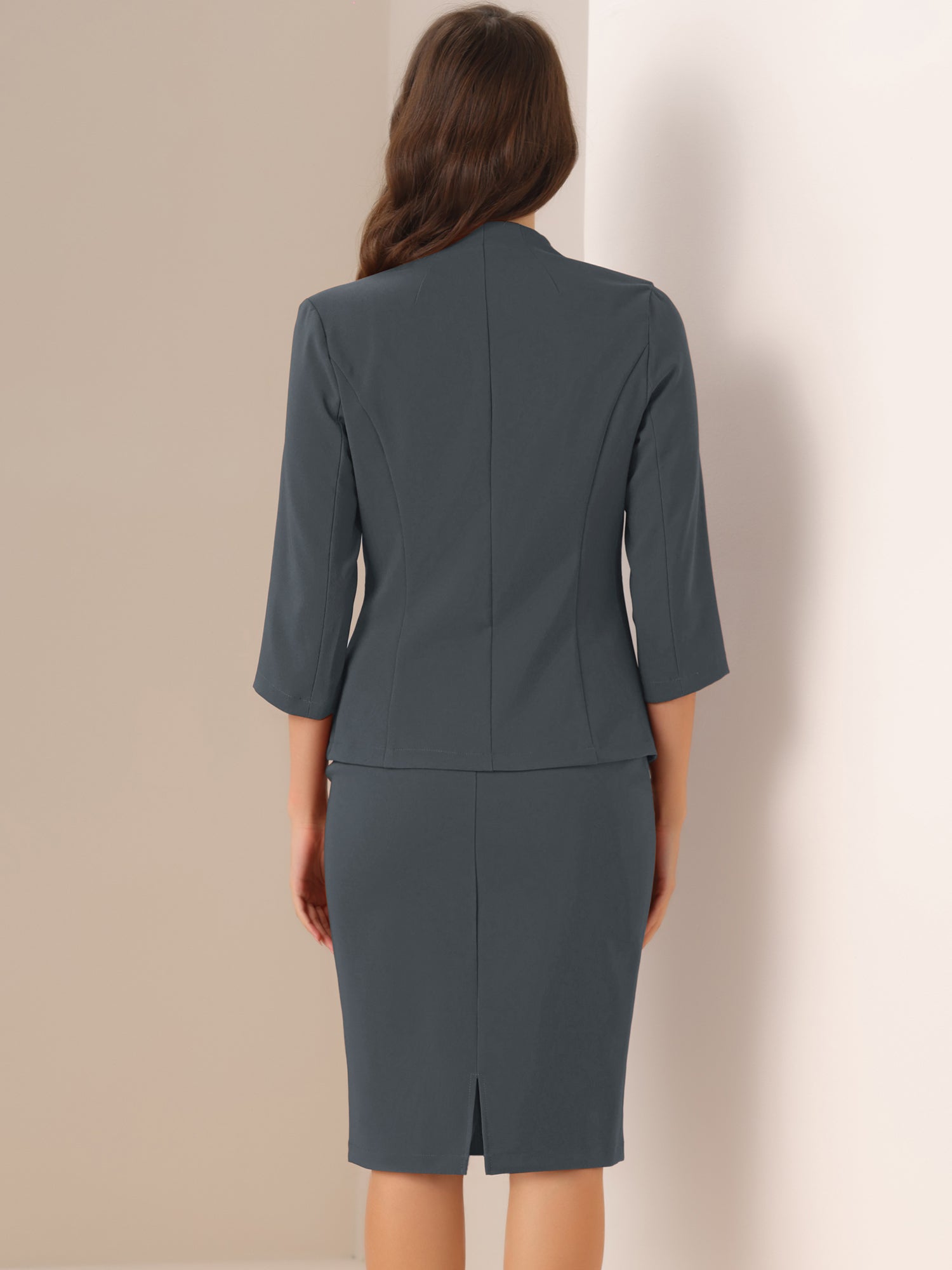 Women's 2 Piece Business Skirt Suit Set Office Work Collarless Blazer Pencil Skirt