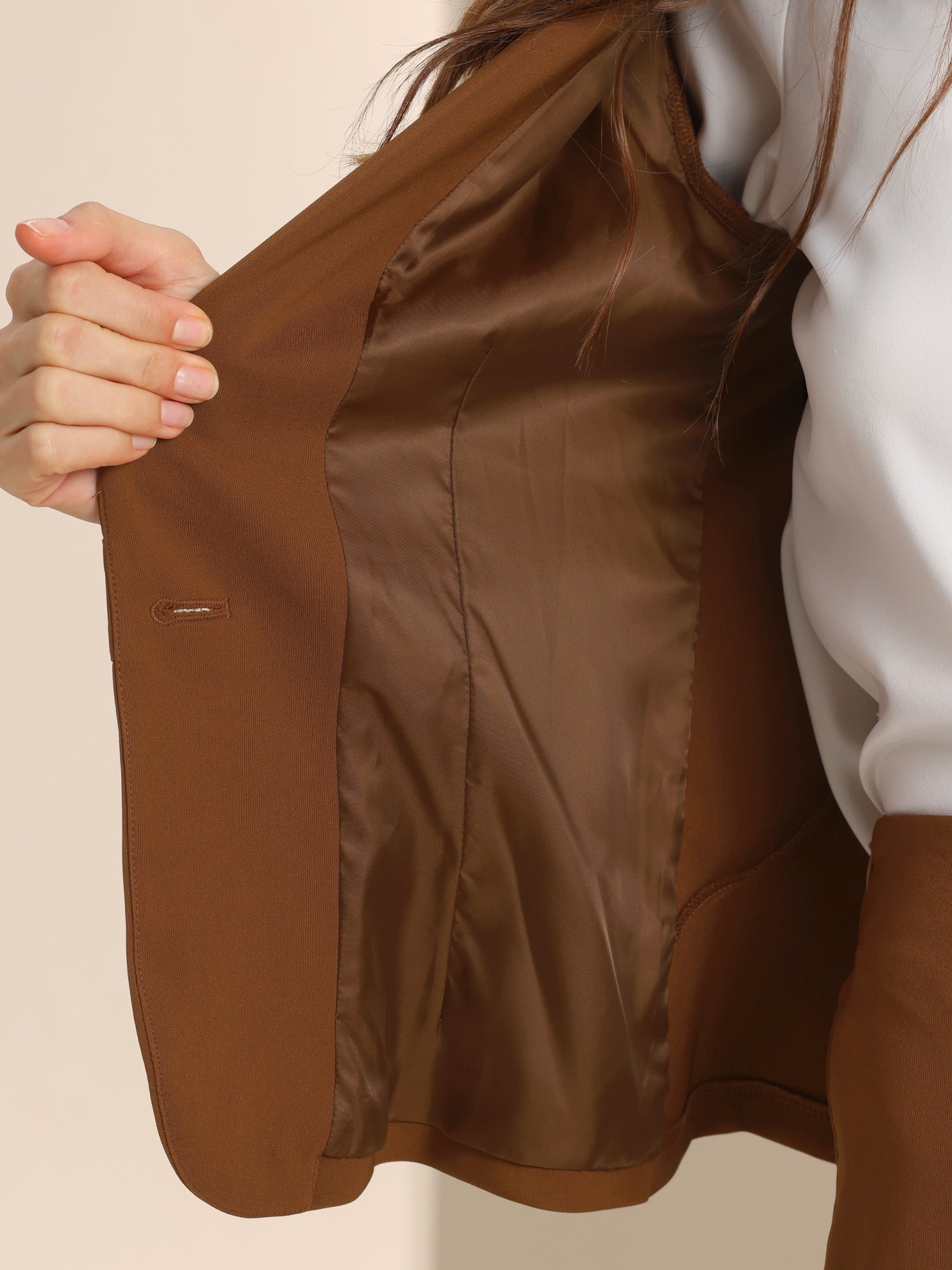 Blazer: Notched Lapel, Long Sleeves, Cinched Waist, One Button