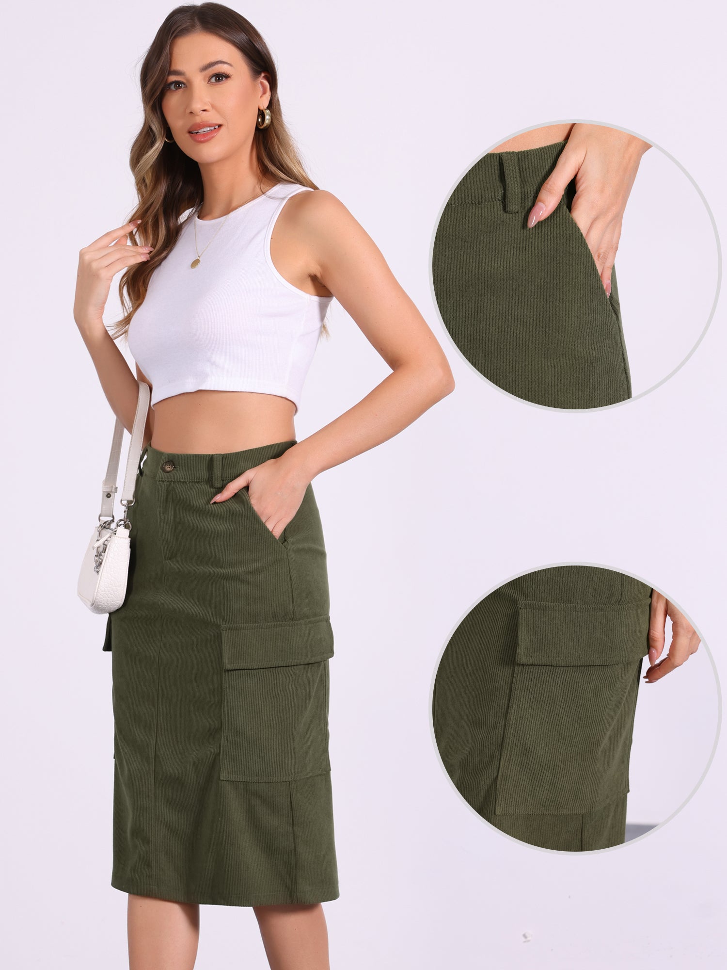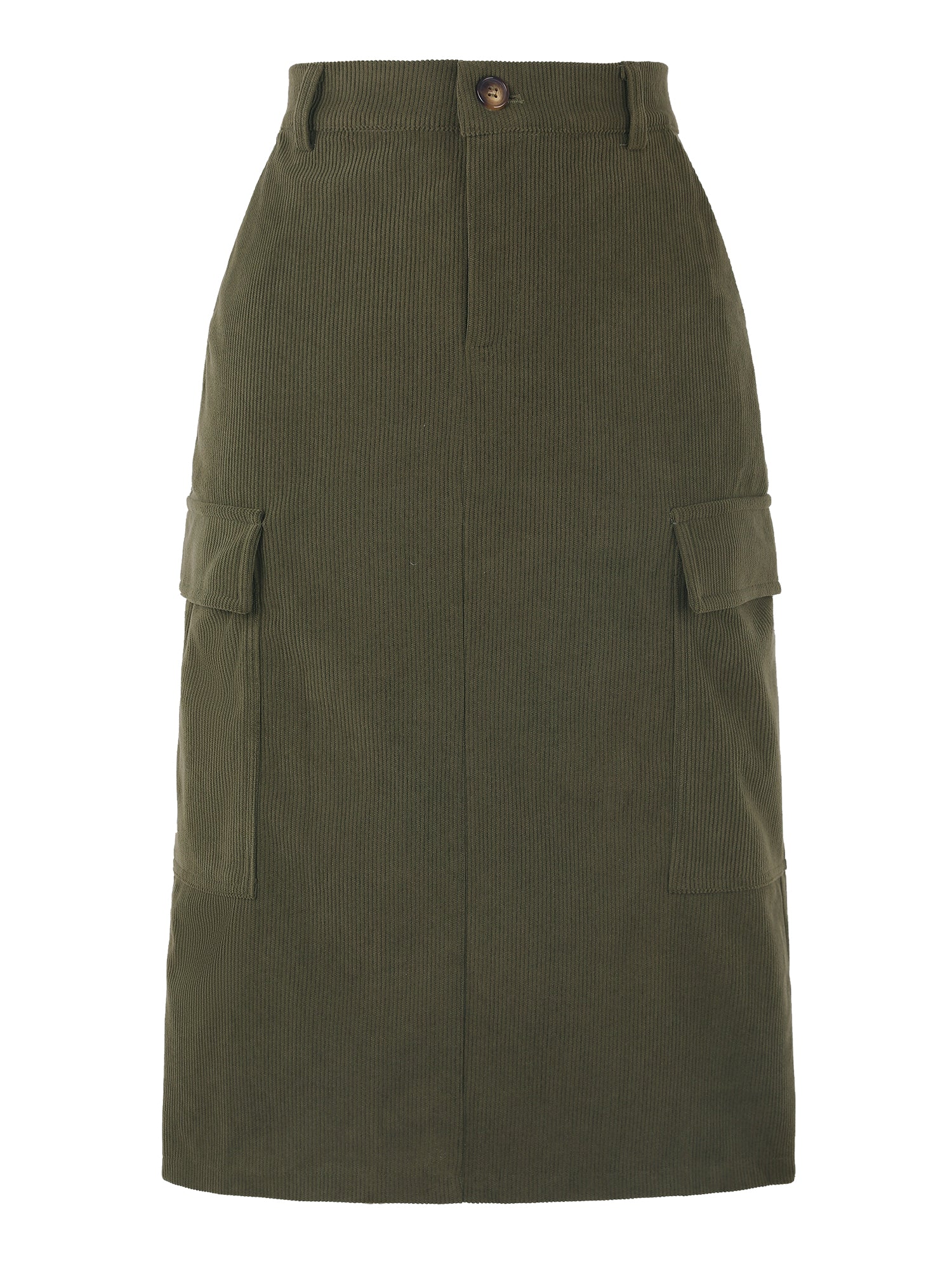 Women's Corduroy Cargo Skirt High Waisted Elastic Back H Line Midi Skirt