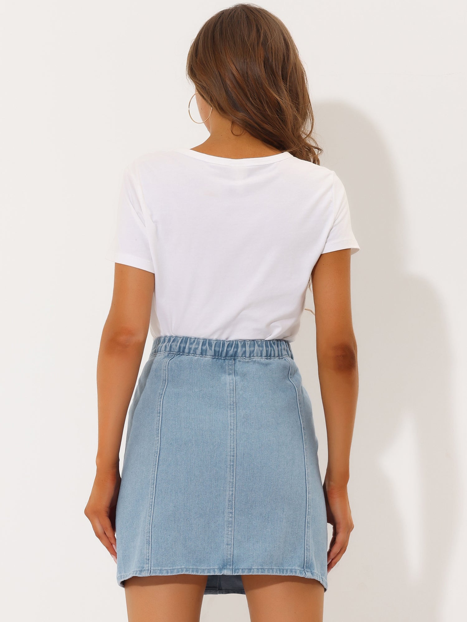 Women's Denim Skirts Summer Casual A-Line Short Button Down Jean Skirt