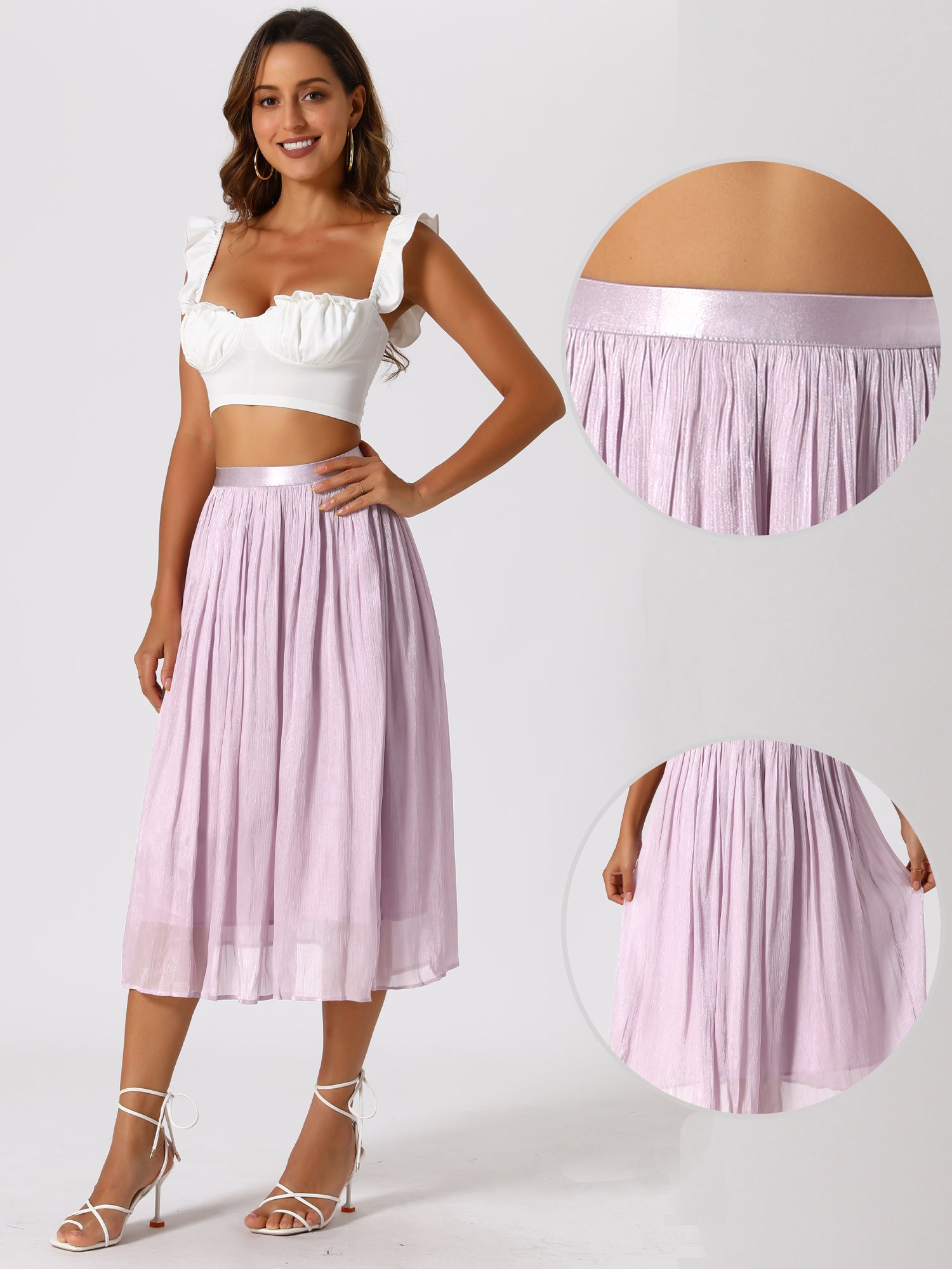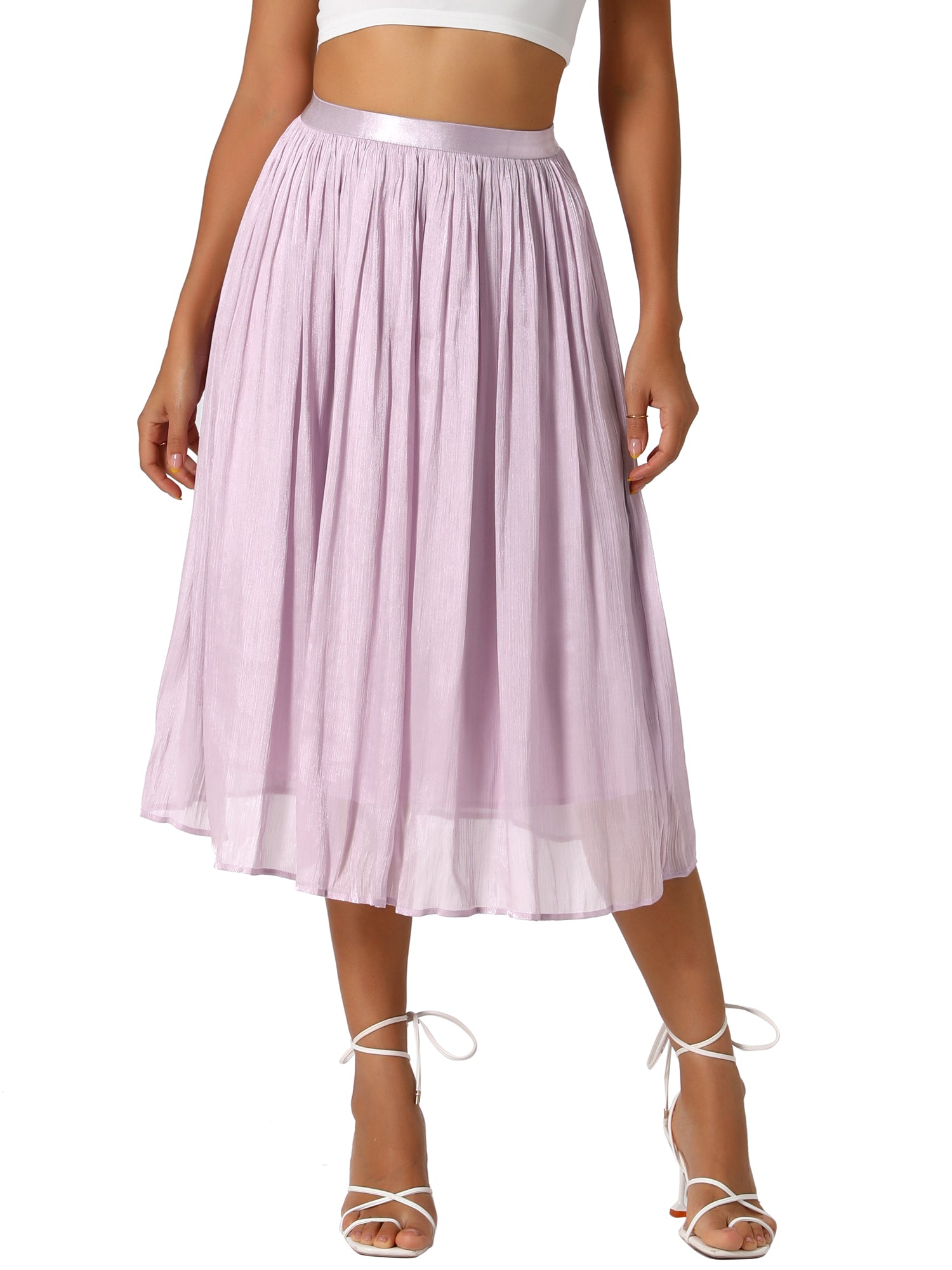 Women's High Elastic Waist Skirt A-Line Swing Pleated Midi Skirt