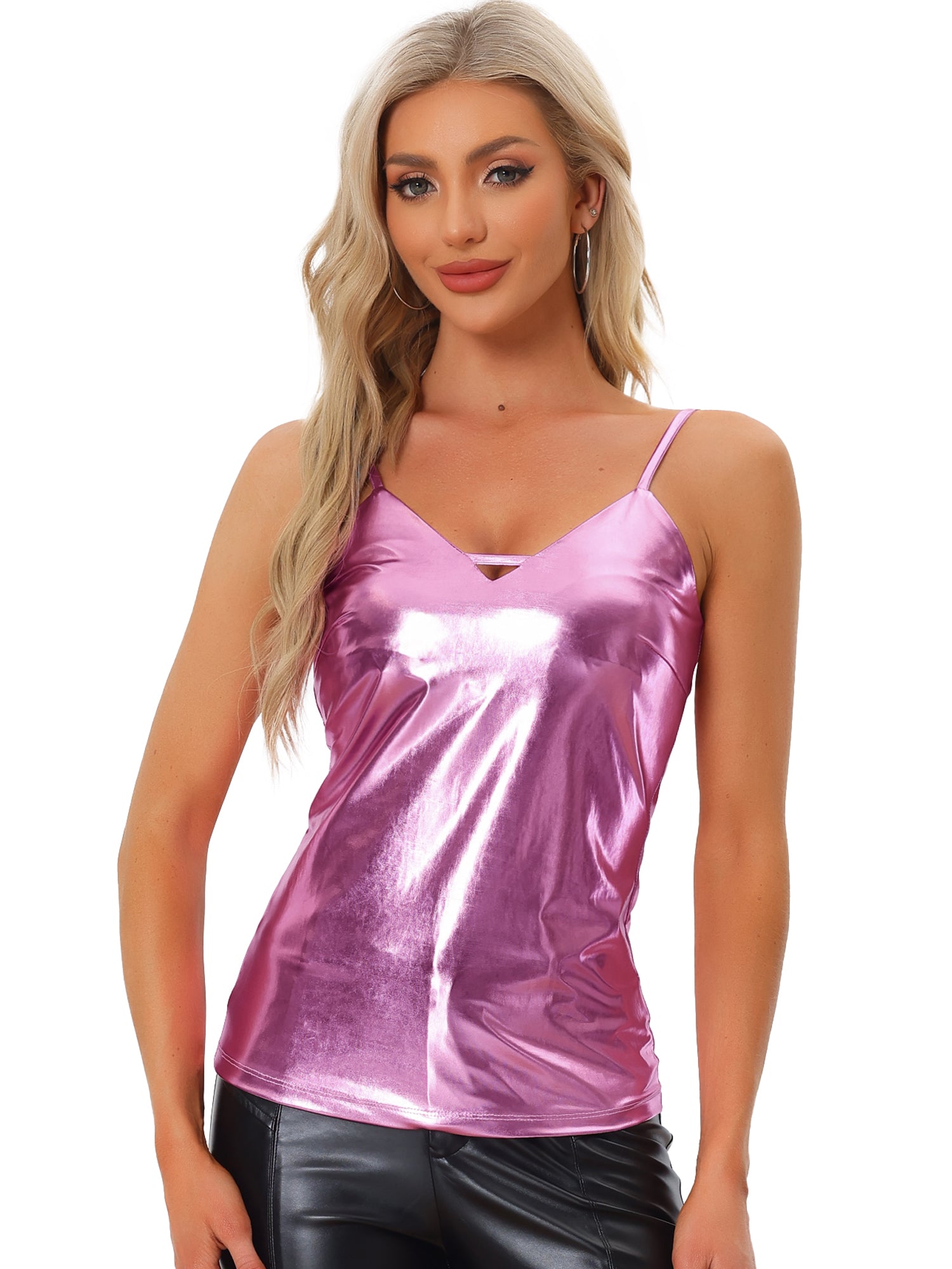 Women's Metallic Shiny Party Tank Top Deep V Camisole Top