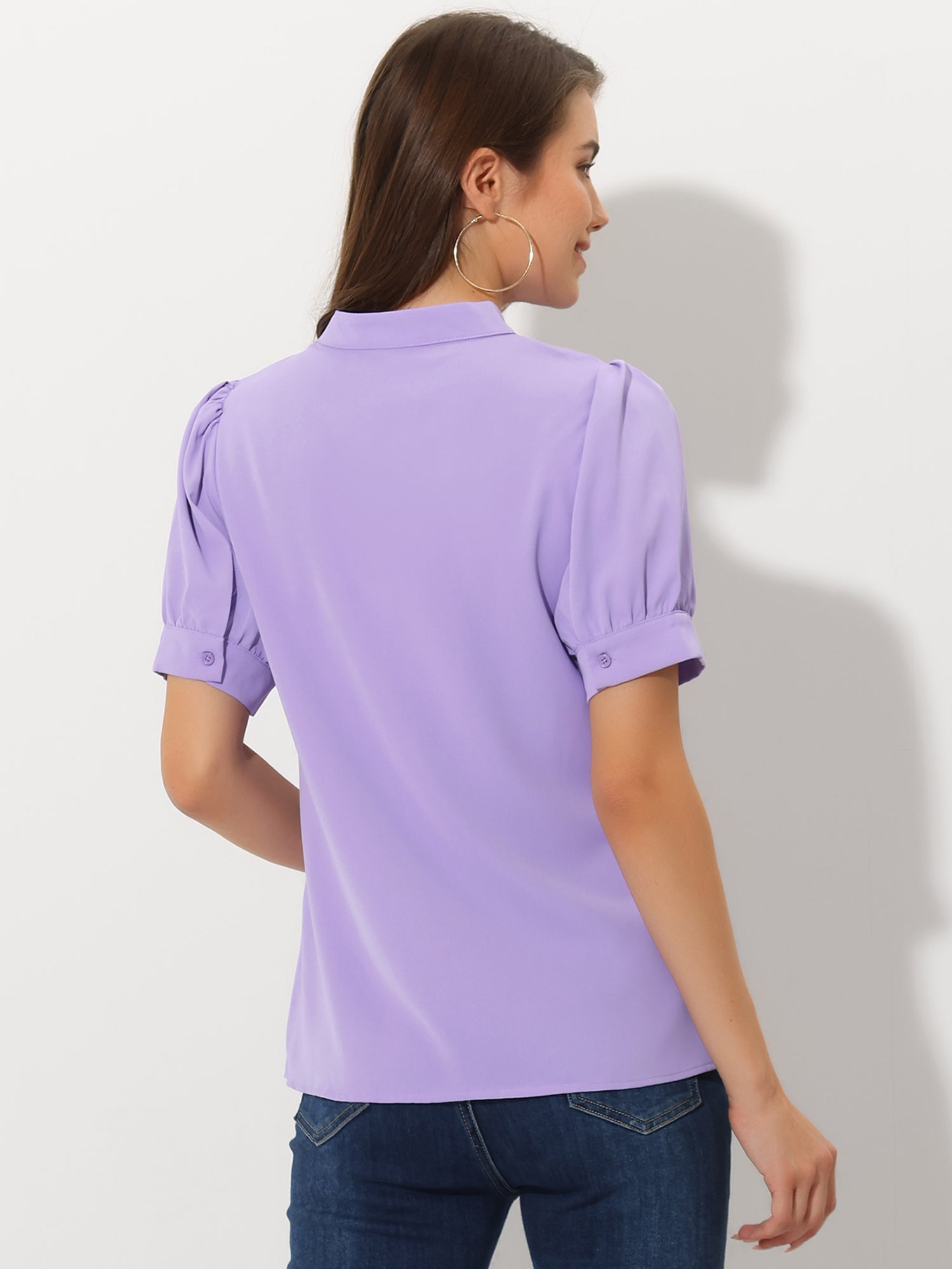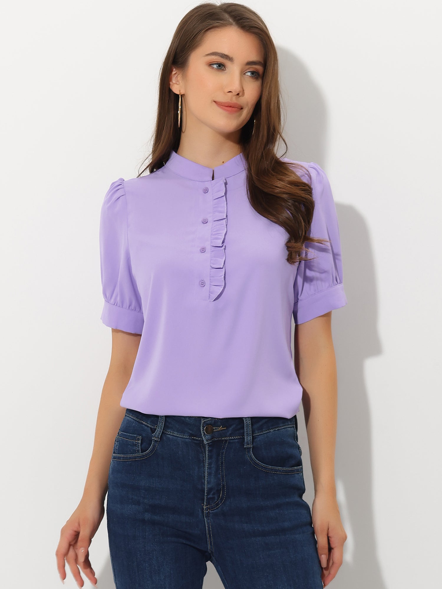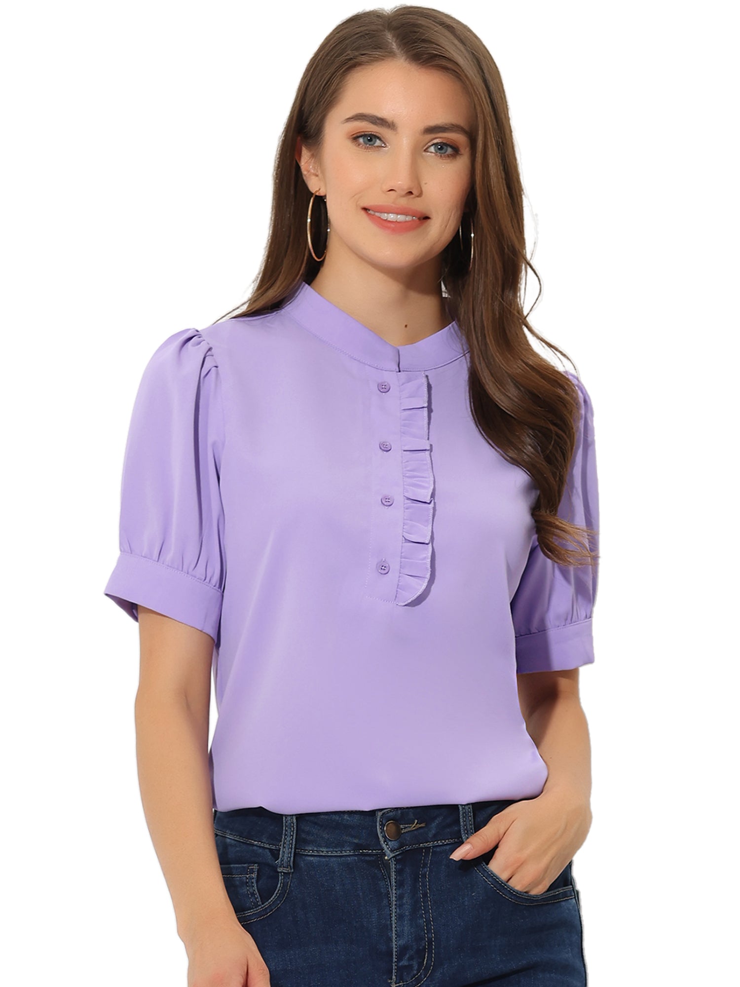 Women's Retrp Workwear Half Placket Puff Sleeve Ruffled Blouse Top