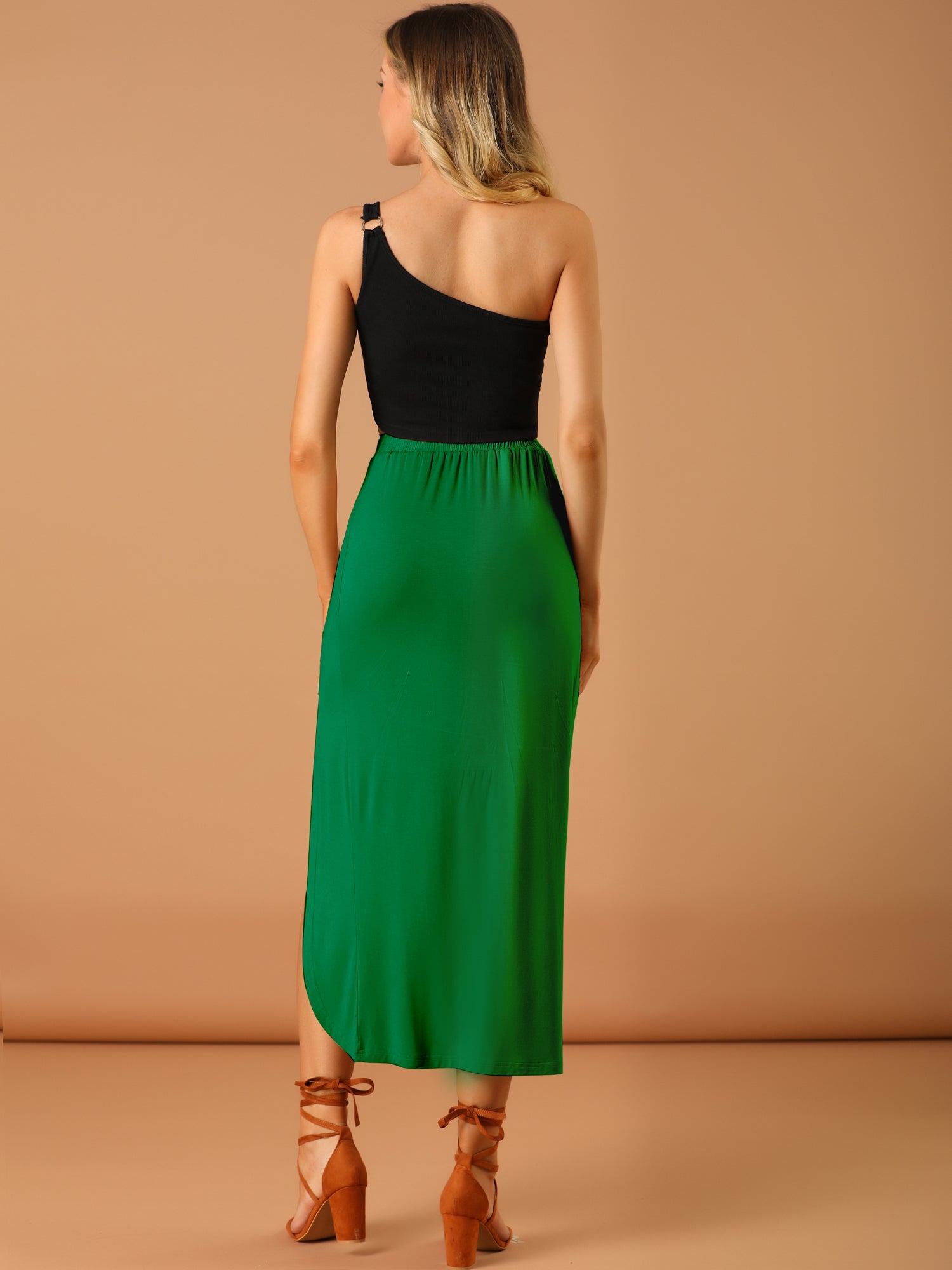 Women's Ruched Split High Waist Summer Long Maxi Skirt